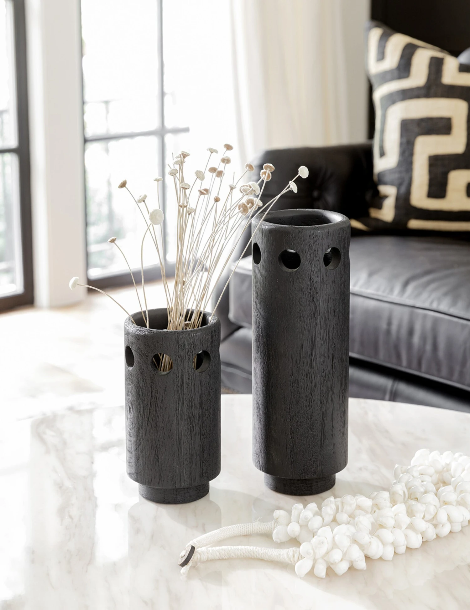 Regina Andrew is a husband and wife duo whose distinctive lighting and decor feature globally inspired designs with a modern edge and elegance in every detail. With a sleek silhouette cut in wood, these vases offer a rustic warmth in a sculptural tabletop accent. The varied sizes make them ideal for adding dimension to a console, coffee table, or bookshelf.
