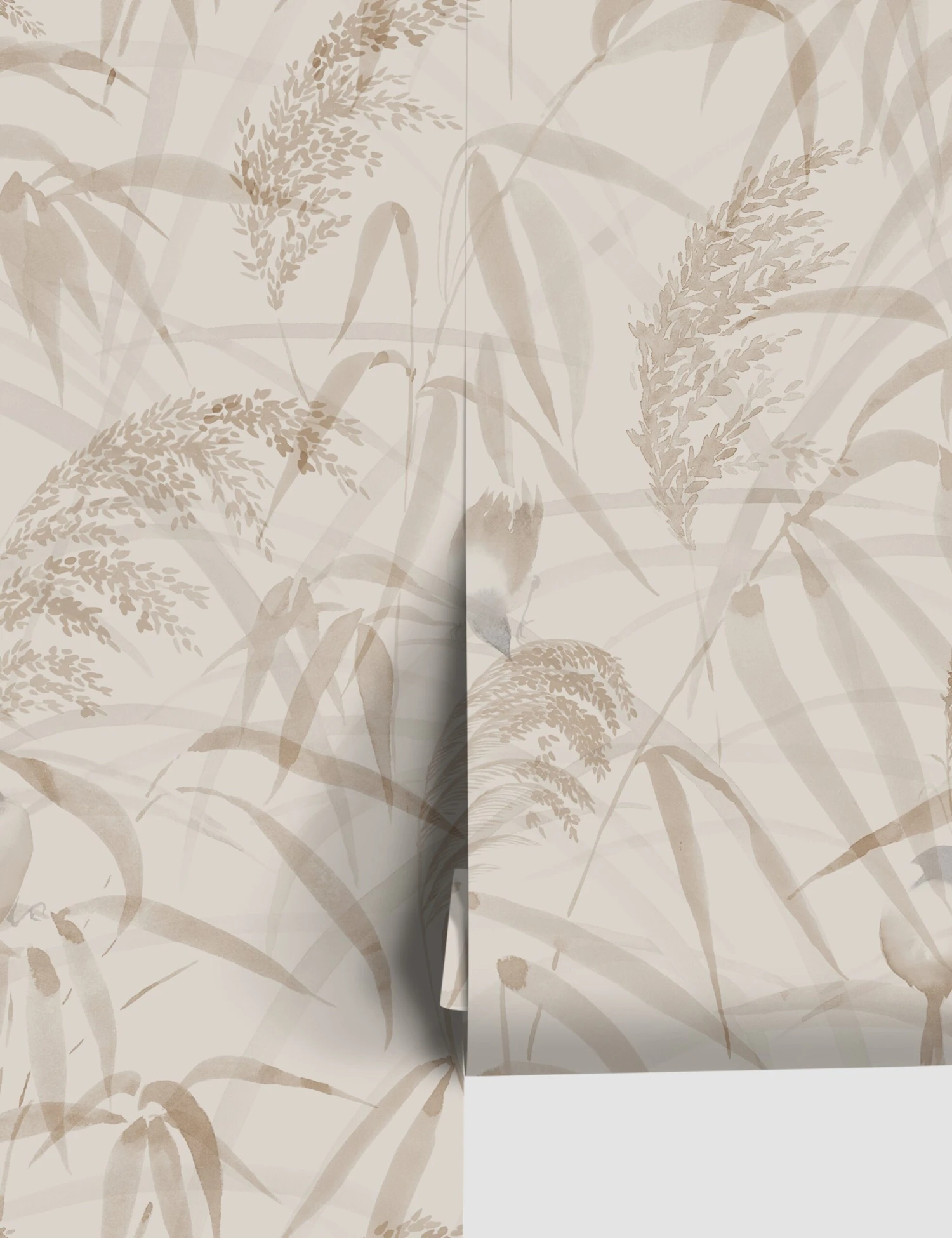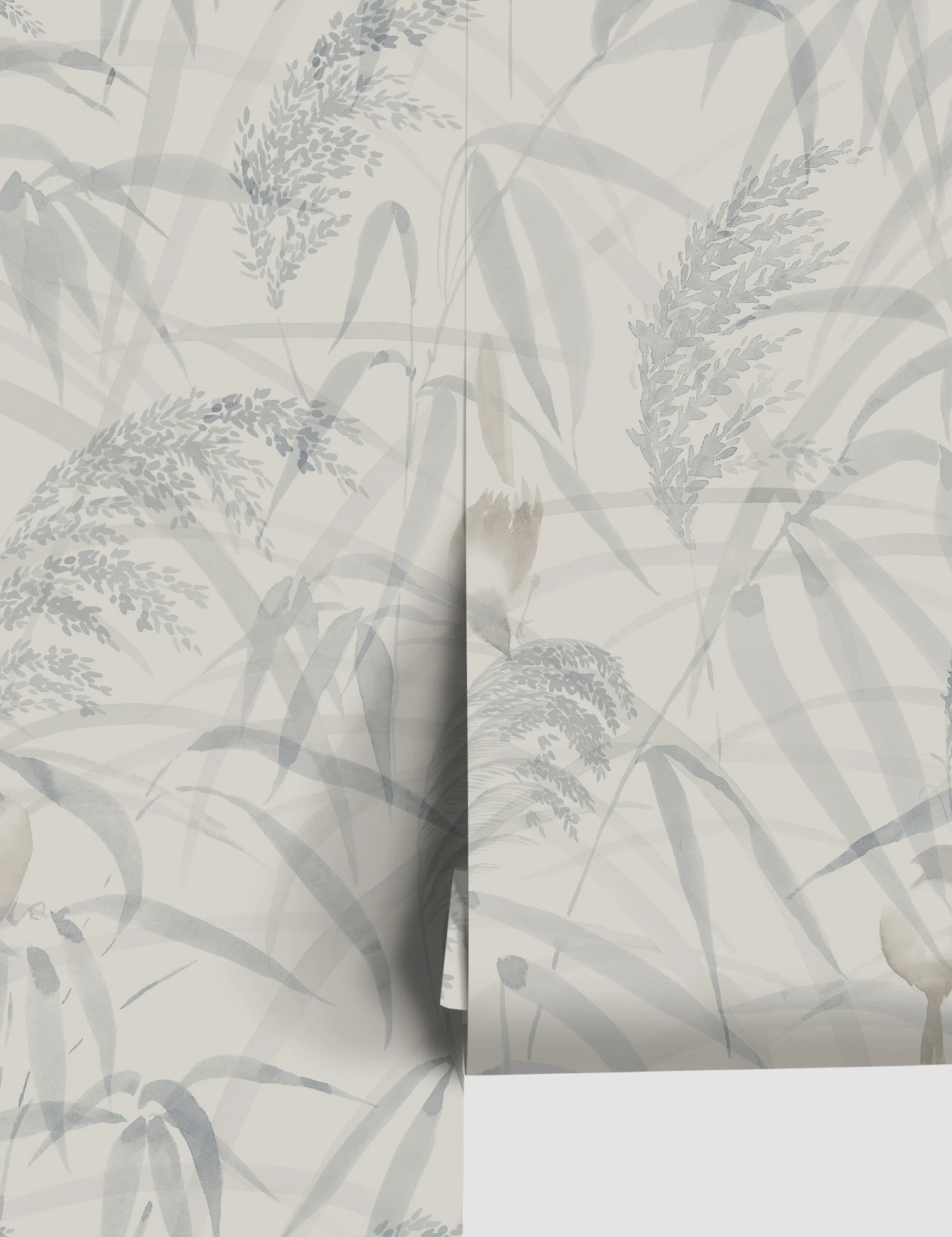 Add some fresh appeal to the room with this botanical wallpaper design. A subtle palette brings the natural scene to life, with birds blending into reeds and leaves in a tonal field. With its soft coloring, this home wallpaper is a great way to layer in a graphic element with versatile styling appeal.