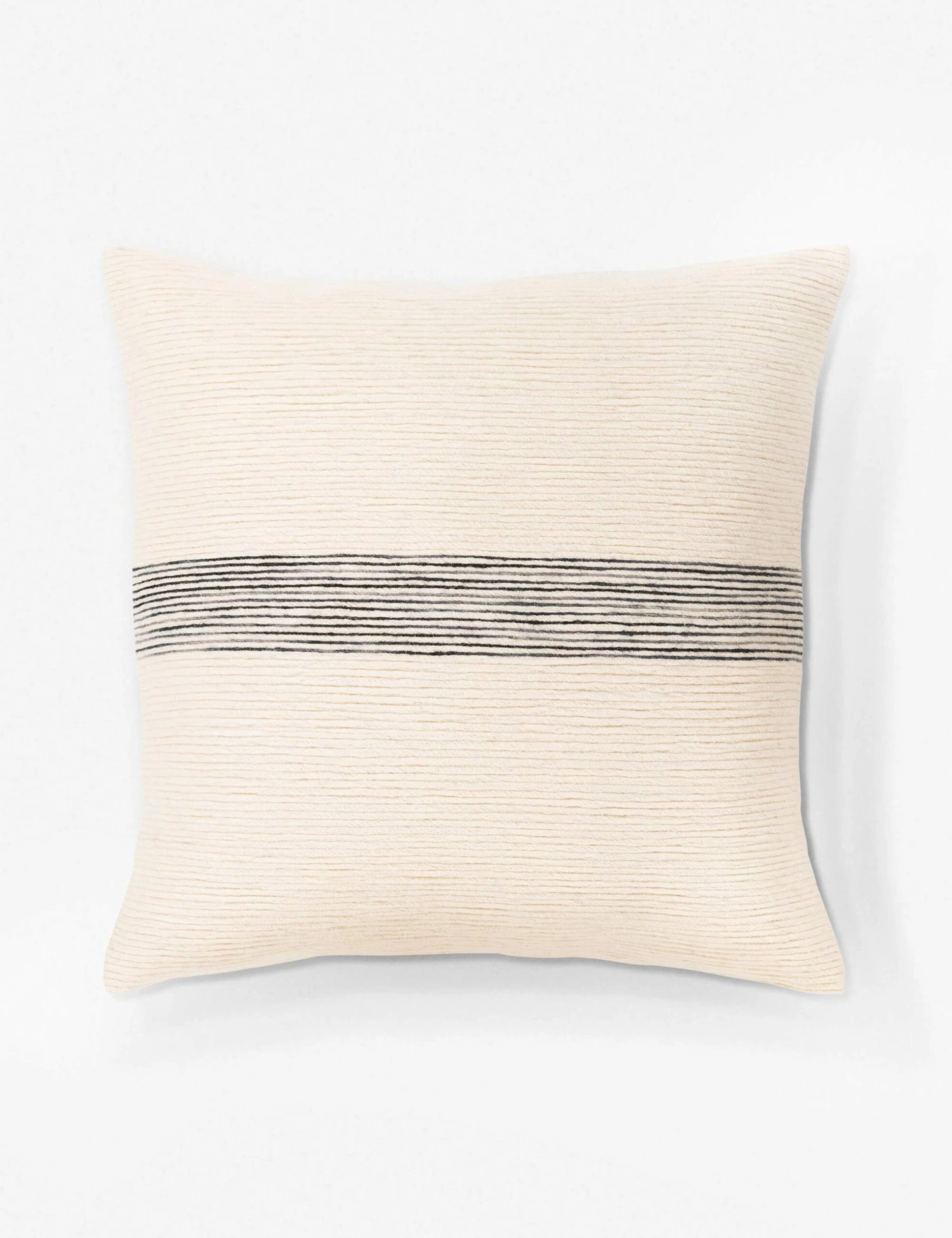 This throw pillow brings a subtle texture and a variegated stripe design for added interest. Perfect for contemporary spaces and kids’ rooms!