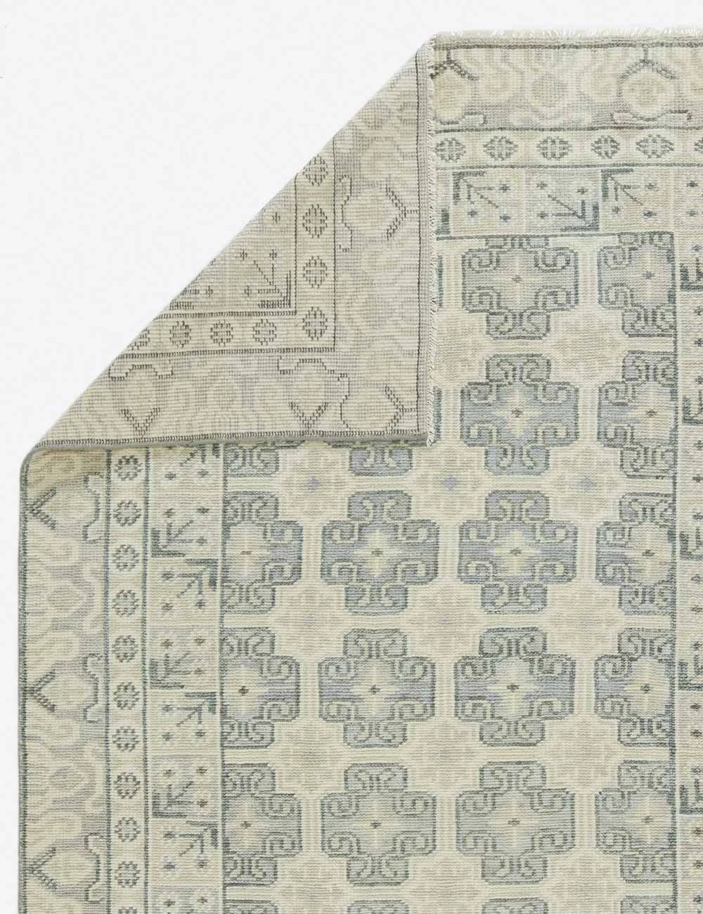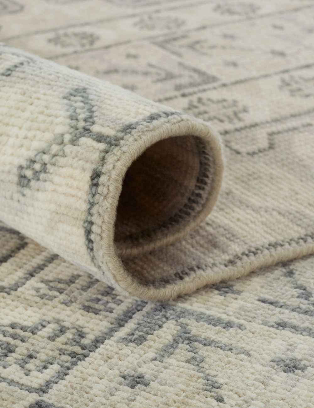 Vintage-inspired tribal prints and a bordered design get updated in a muted, earthy palette for an exceptional take on transitional style.