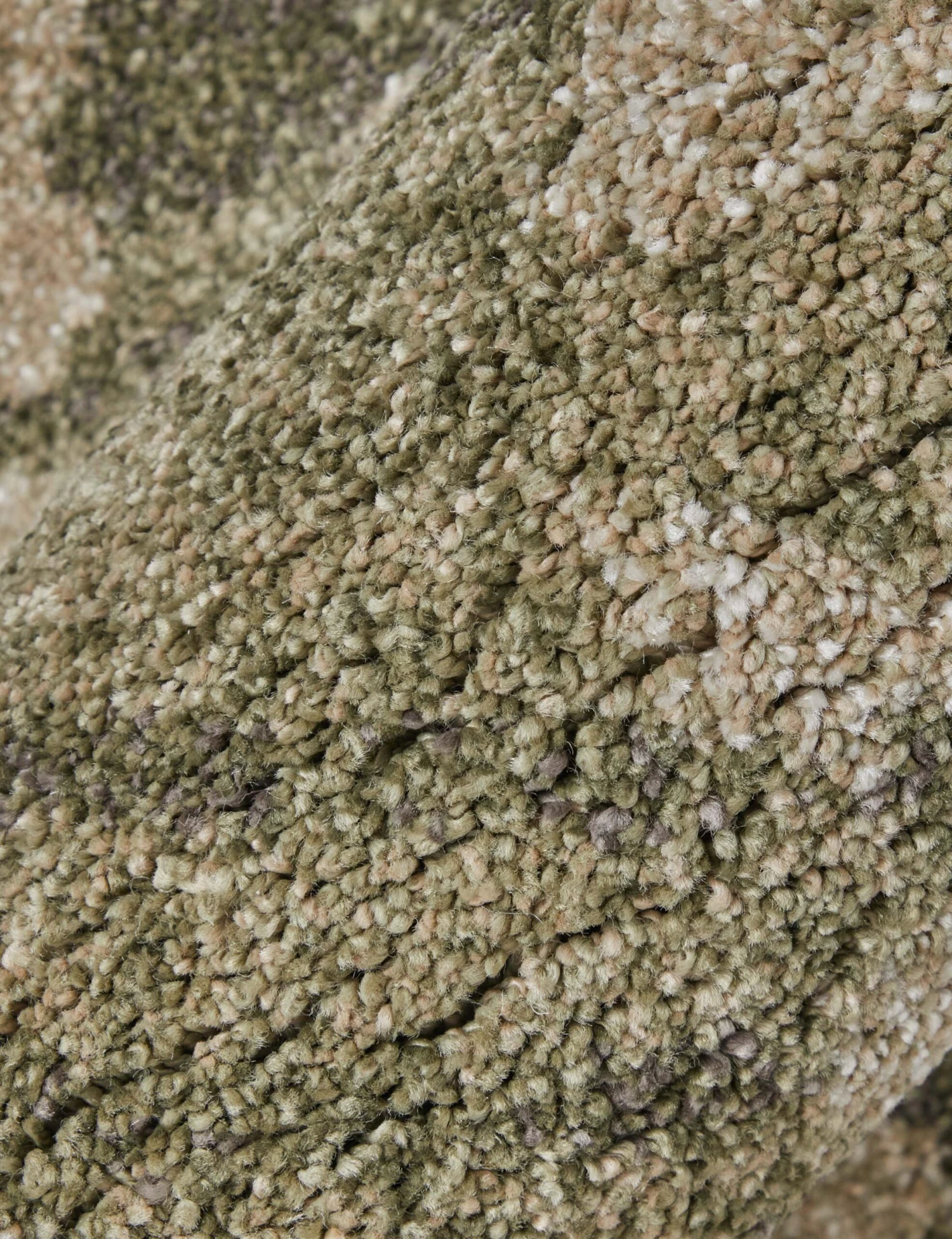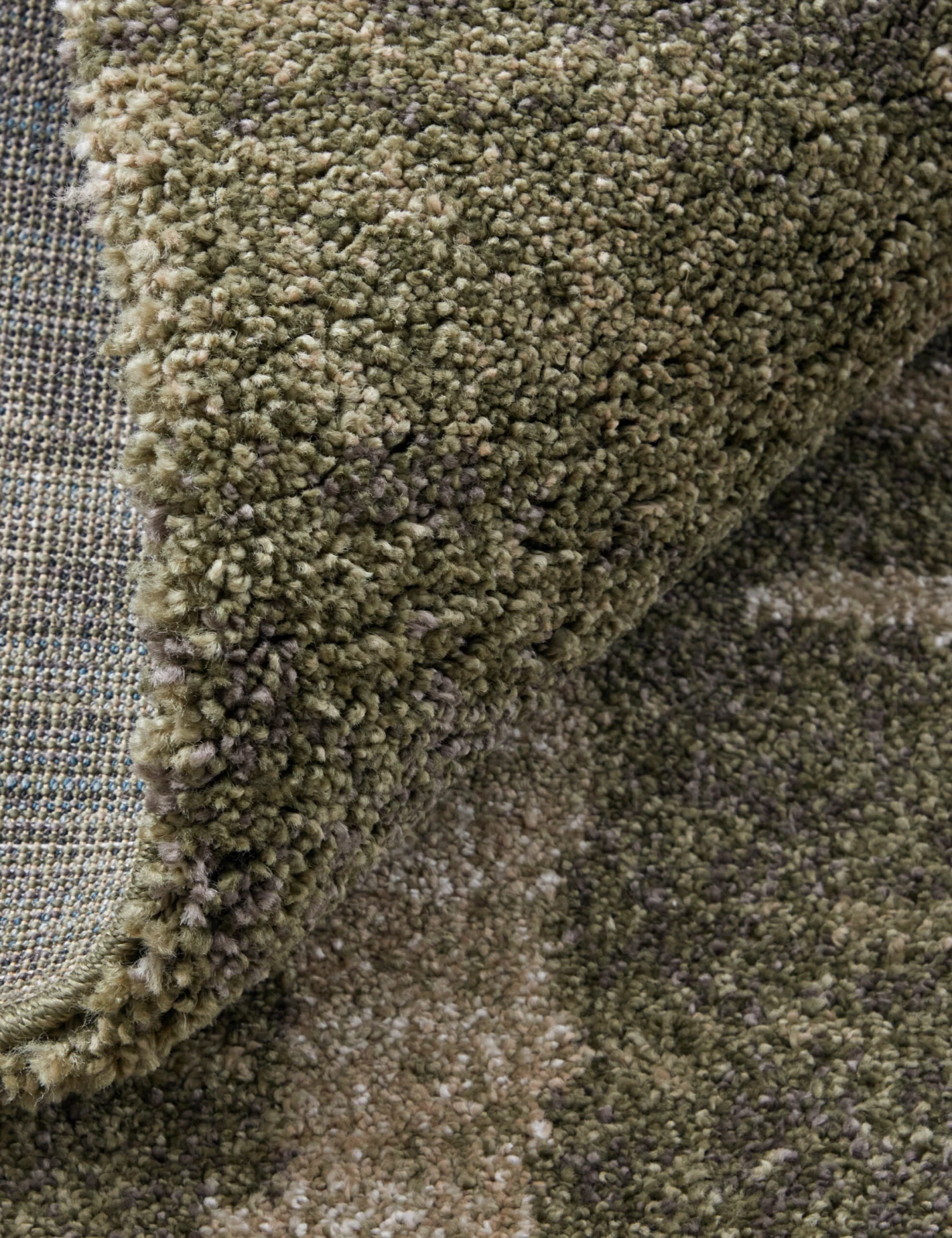 Layer plush texture underfoot with the Sheridan rug. The abstract design offers a dynamic look grounded in a lush tan-on-green colorway, perfect for modern decor. With its thick pile and tranquil tone, this rug sets a soft foundation for quiet comfort in a bedroom or lounge.