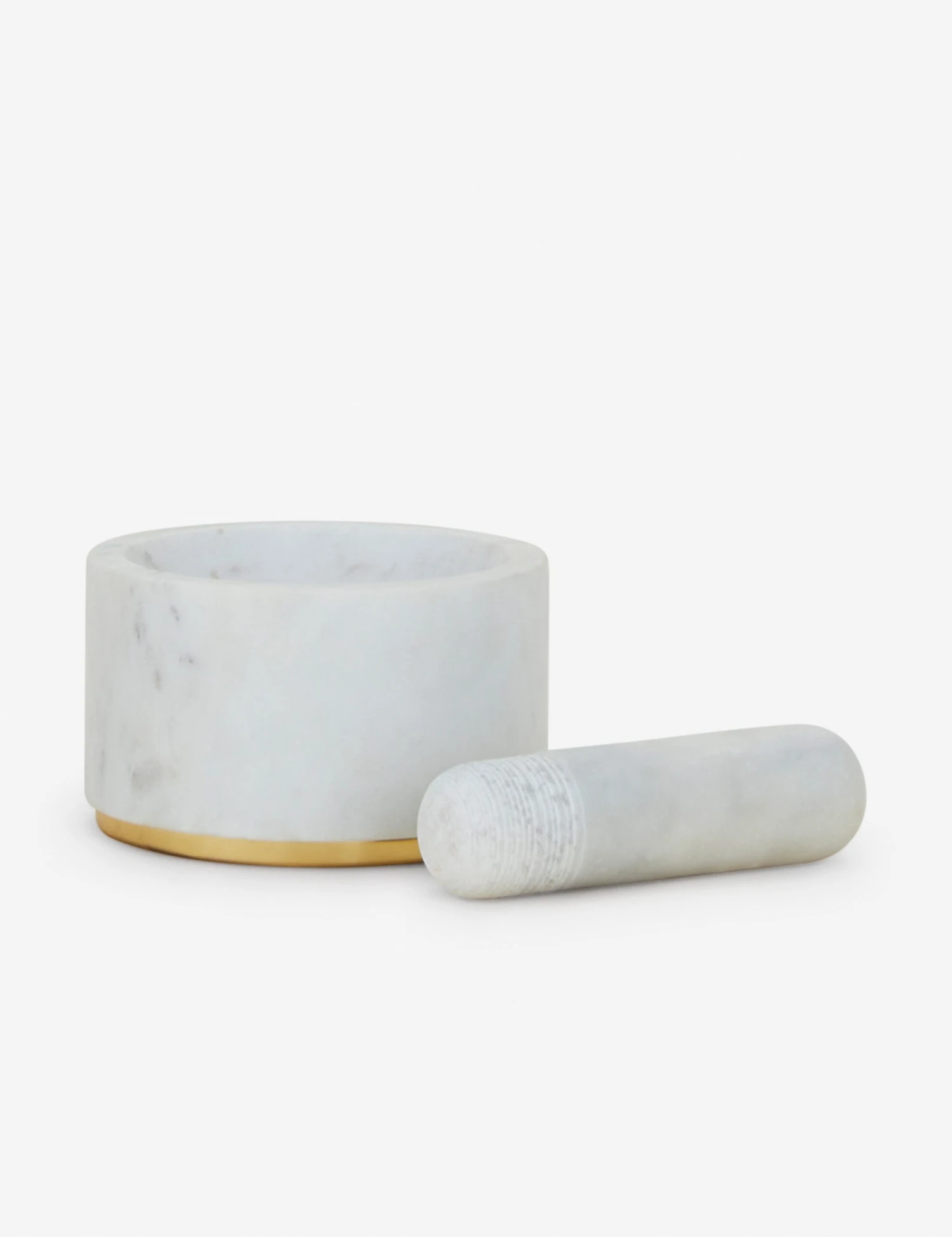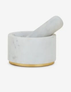 Smooth marble paired with a brass accent gives this mortar and pestle a modern edge. Use it to grind herbs, spices, or pastes for fresher flavors in your kitchen.