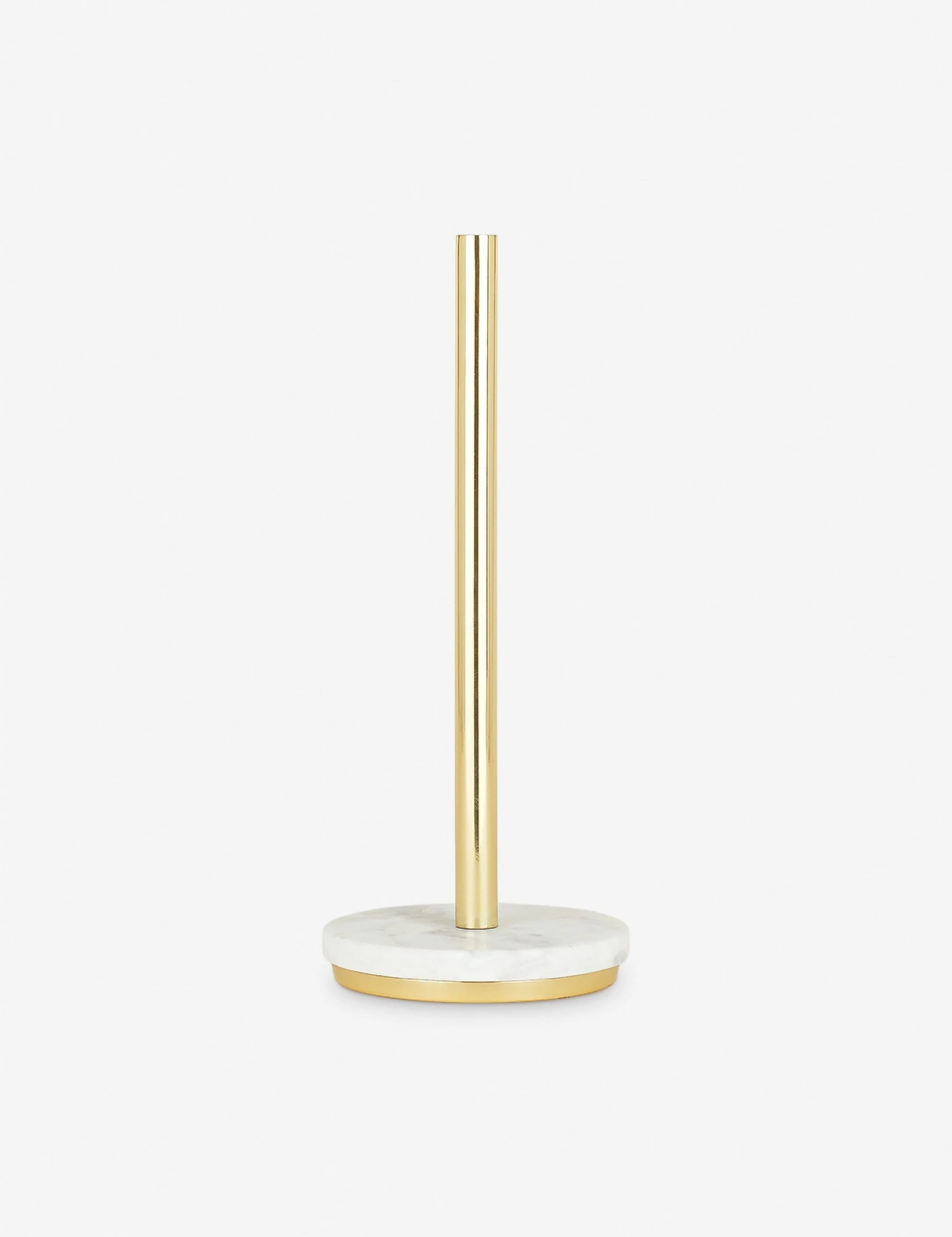 A weighty marble base and brass accent turn this paper towel holder into a countertop statement. Designed to keep rolls steady, it brings a polished edge to a kitchen essential.