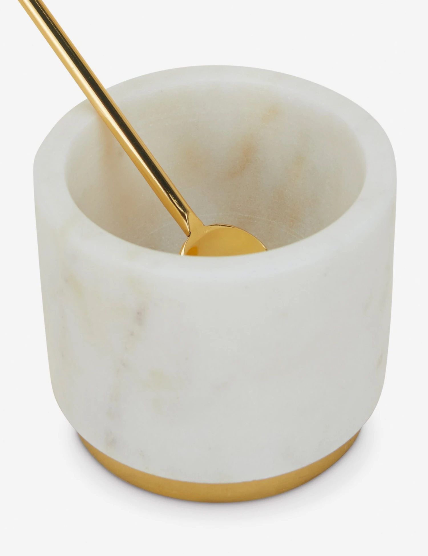 Clean marble and a subtle brass base give this pinch pot understated elegance. Keep salt, spices, or garnishes close at hand in a piece that blends beauty with utility.