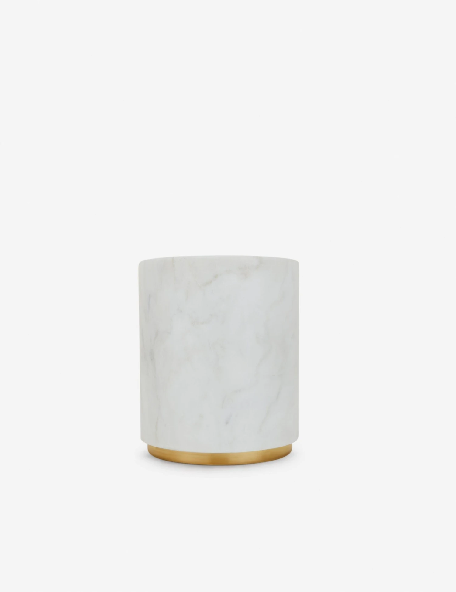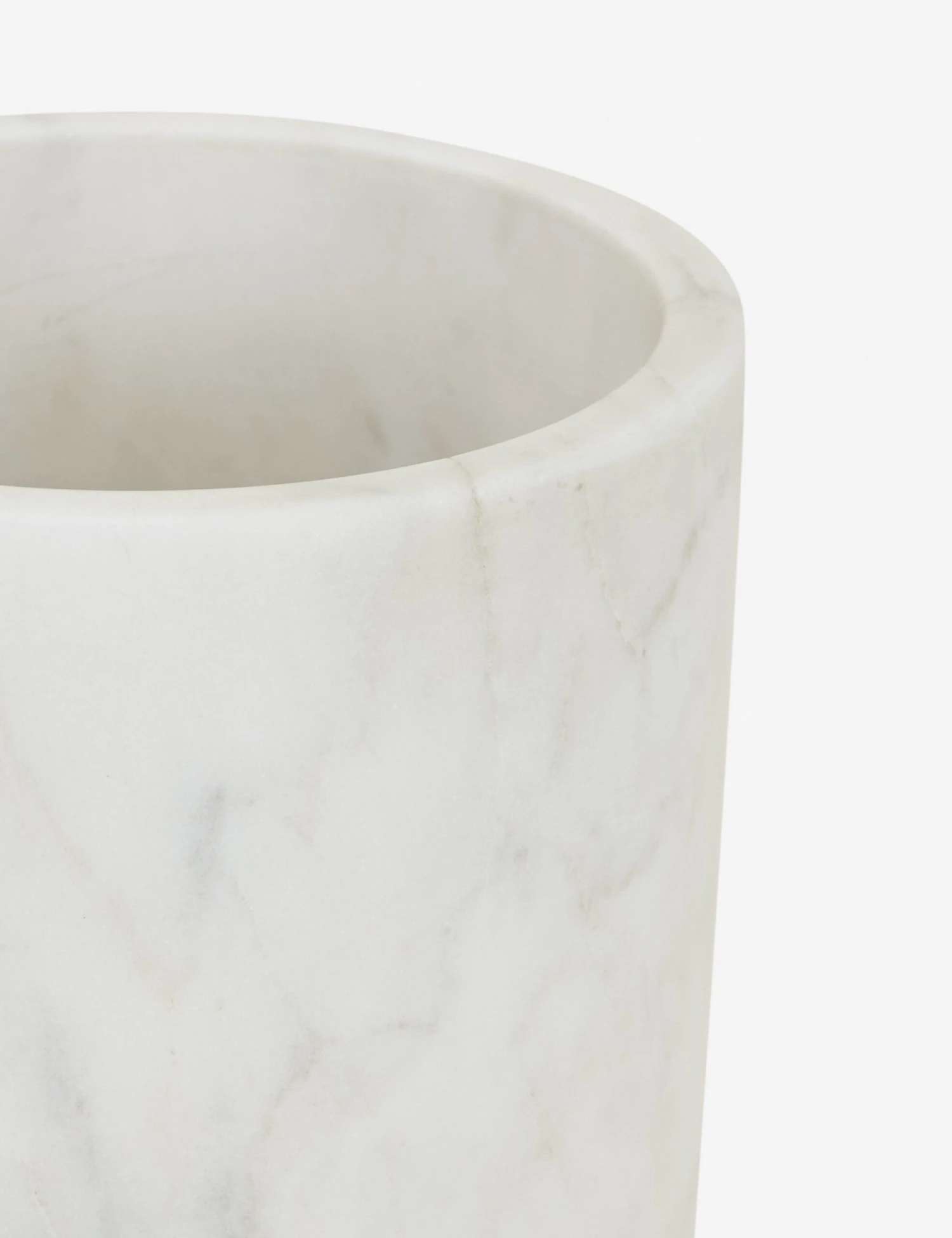 With its sleek marble form and brass base, this crock offers timeless style for a kitchen essential. It keeps your most-used utensils within reach while lending a refined note to the counter.
