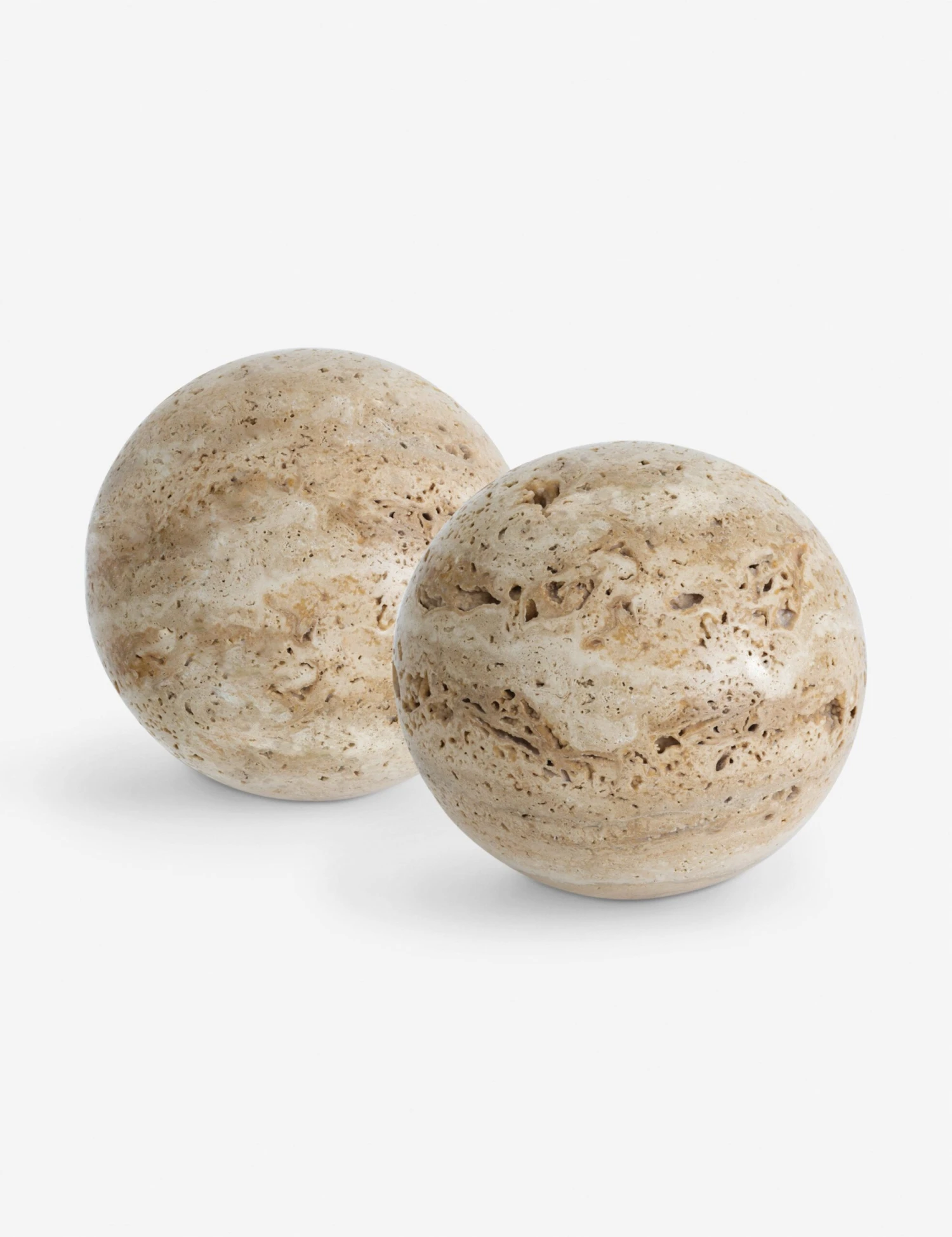 Regina Andrew is a husband and wife duo whose distinctive lighting and decor feature globally inspired designs with a modern edge and elegance in every detail. These travertine bookends add the perfect touch of mineral warmth to the room. Their spherical form is perfect for flanking some favorite editions or accenting a more organic curation.