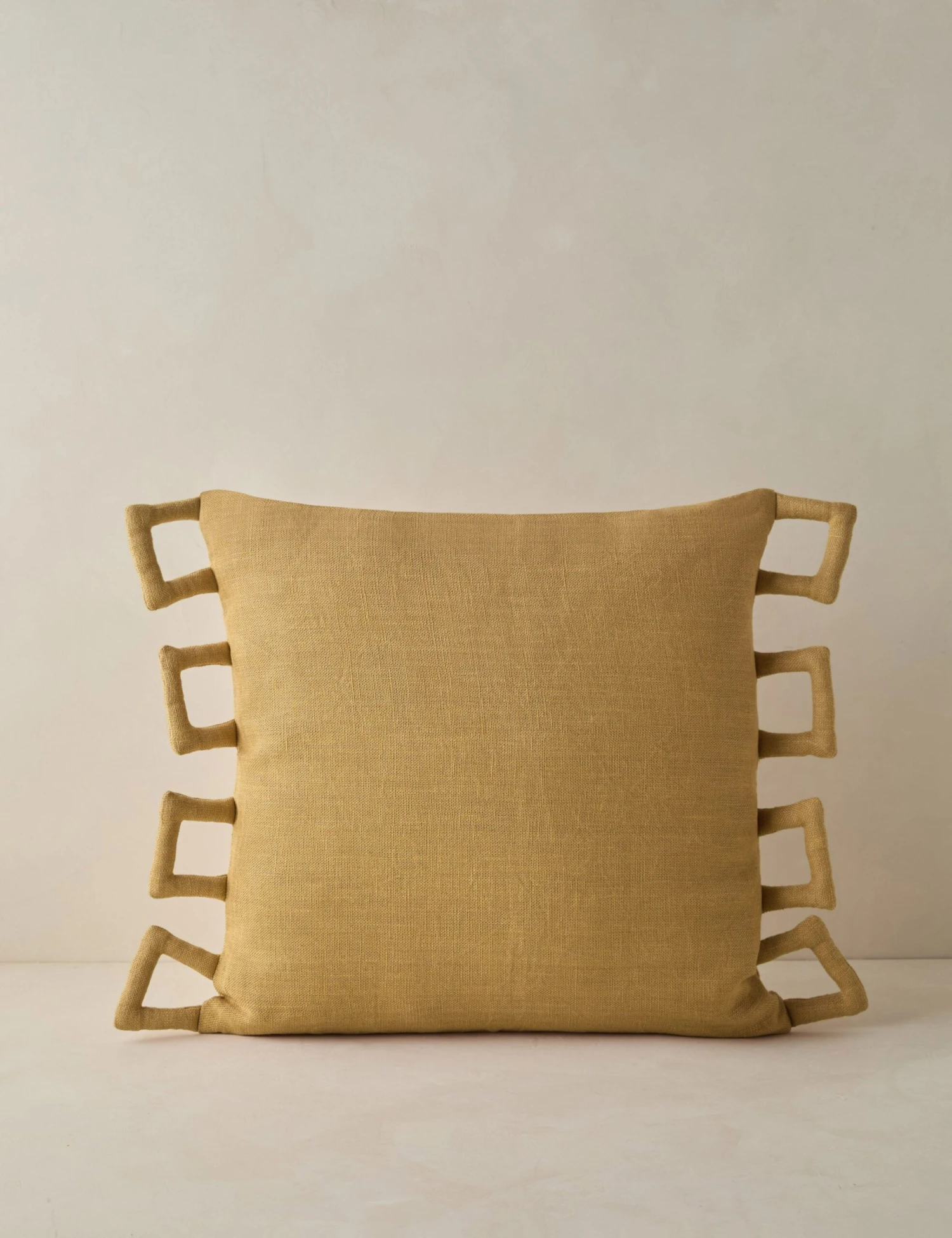 Sofia folds notes of classic pottery into an artfully modern throw pillow. With a selection of beautiful colors and lug-like accents, this decorative pillow brings standout style to soft comfort. The linen offers a natural touch that holds up well in everyday spaces.