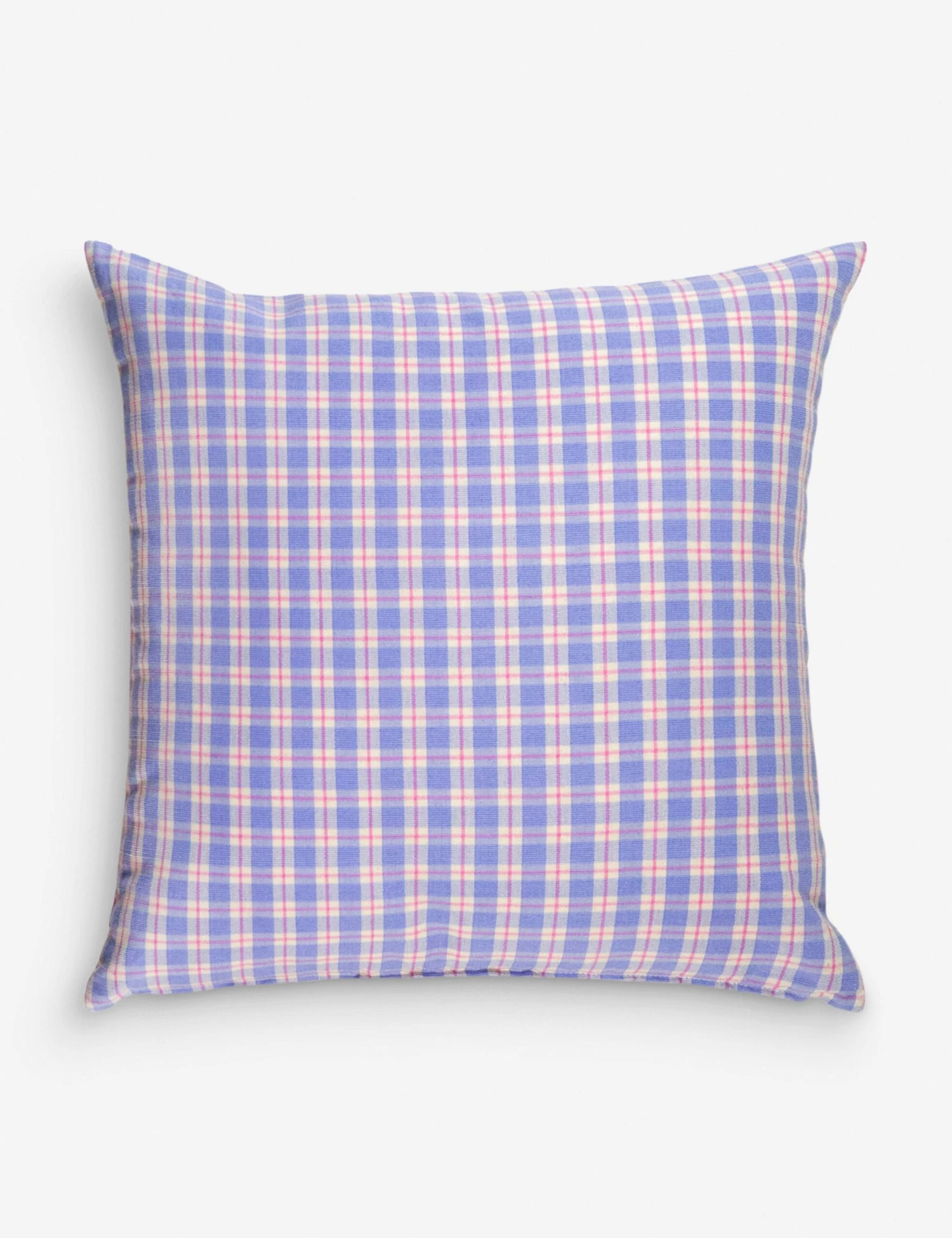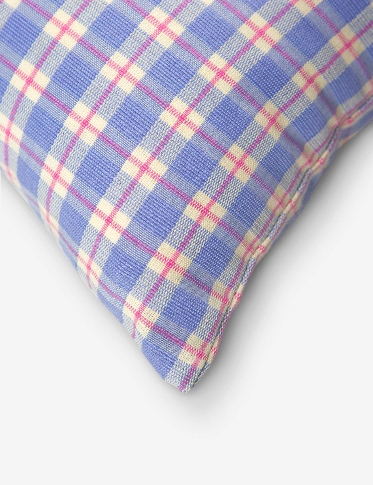 A timeless plaid pillow in periwinkle and pink. This chic accent pillow brings a vibrant touch to any space with its colorful handwoven design. Powered by People works with makers from all over the world to bring small-batch, responsibly made goods to market. This piece is from Archive NY, a women-led brand that partners with artisans in Guatemala to preserve traditional weaving practices.