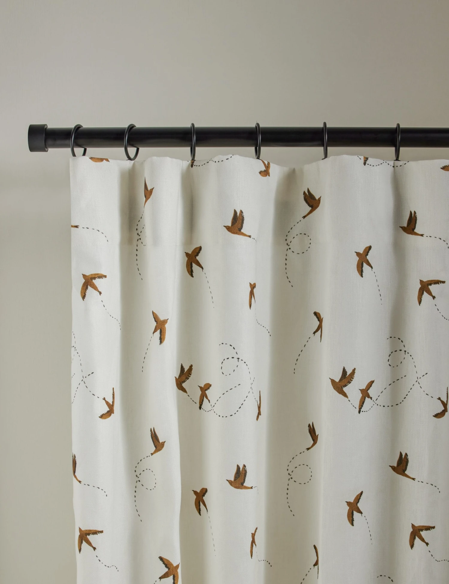Designed exclusively for Lulu and Georgia, our Rylee + Cru collection features timeless and whimsical designs inspired by travel, nature, and vintage illustrations. On this curtain panel, delicate birds take flight across a solid field—the perfect window treatment for controlling natural light in an open, airy living space.