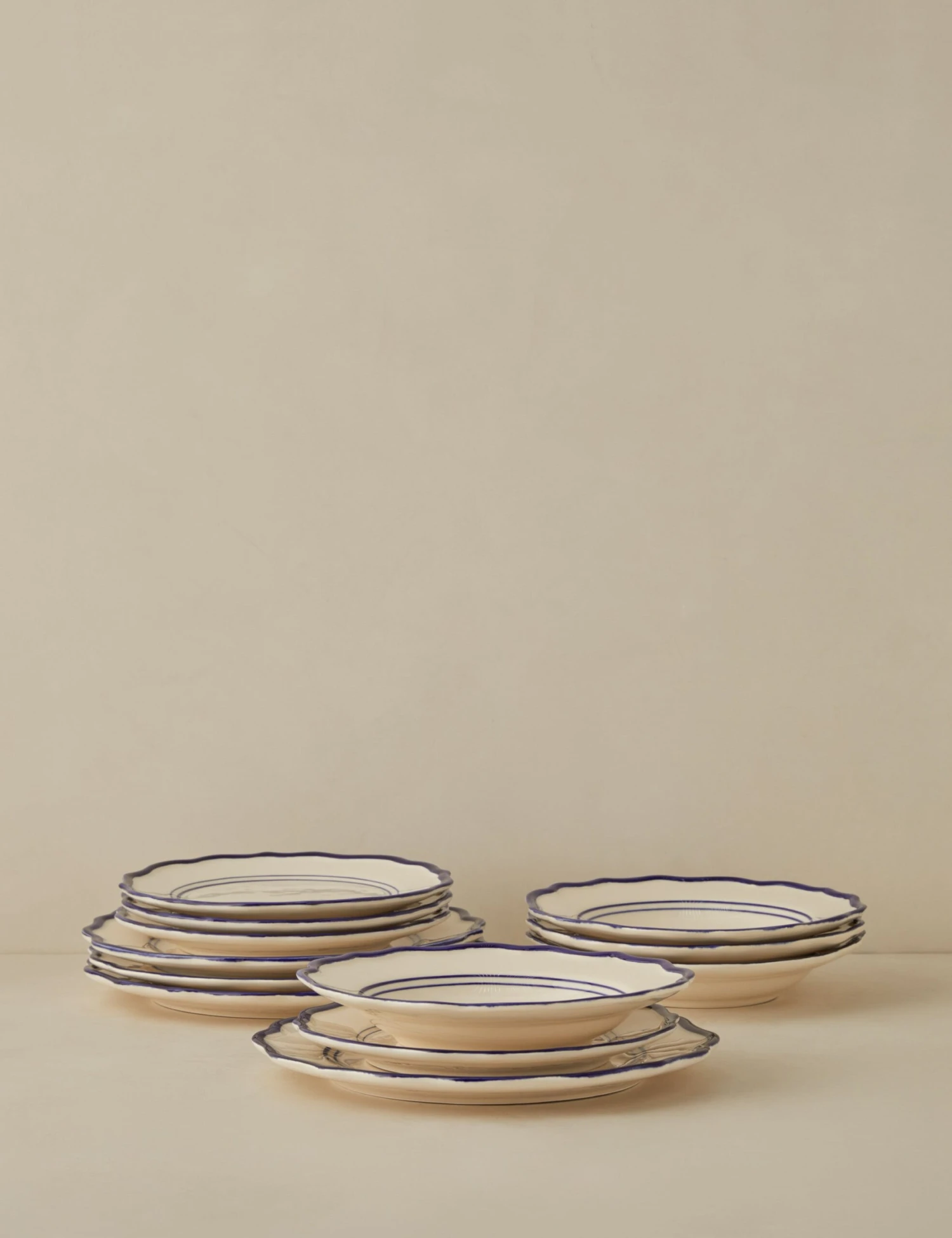 Elegance at the table is all about elevating the simple touches. From lovingly crafted pasta to your lightest summer fare, this ceramic dinnerware sets the stage for refined dining. With classic silhouettes and a hand-painted rim, the design refreshes a timeless look. Designed in New York and crafted in Portugal, Madison Maison brings bold style to a fine tradition.