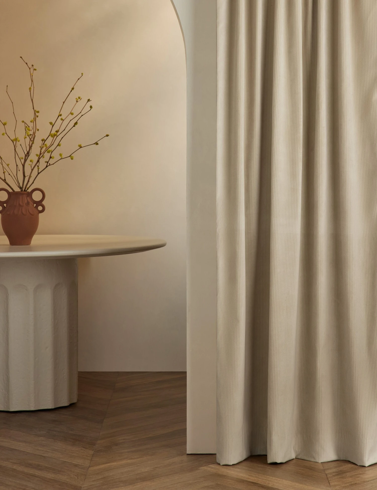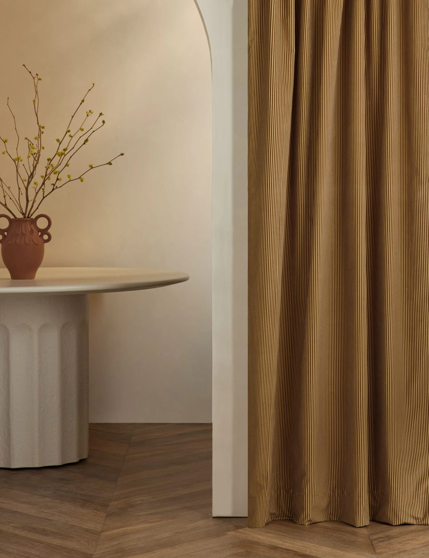 Add a pop of signature style to the room with this velvet curtain design. The stripes bring easy sophistication with the smooth touch of velvet, perfect for a chic refresh. This window treatment is from our exclusive Sarah Sherman Samuel collaboration and features all the trademarks of her warm, edited style.