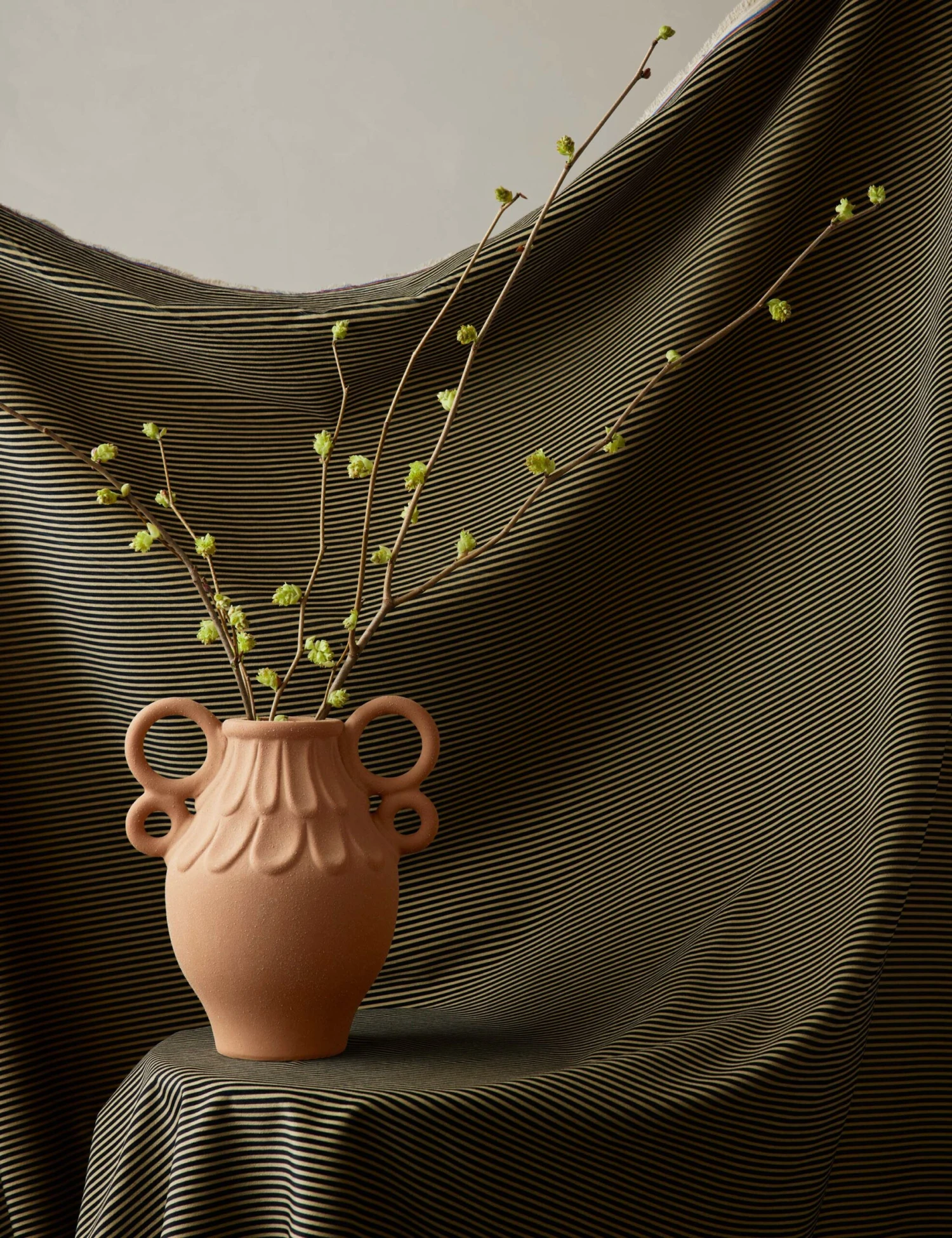 Create a custom element for your home or bring new life to a vintage piece of furniture with this fabric, available by the yard. The stripes bring easy sophistication with the smooth touch of velvet, perfect for a chic refresh. This fabric is from our exclusive Sarah Sherman Samuel collaboration and features all the trademarks of her warm, edited style.