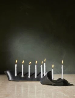 SIN is a Brooklyn-based brand that offers beautiful, handmade pieces designed with intention. This stoneware menorah offers a sculptural silhouette reflecting timeless tradition with a beautifully grounded organic design. For best fit, light with 3/8″ taper candles.