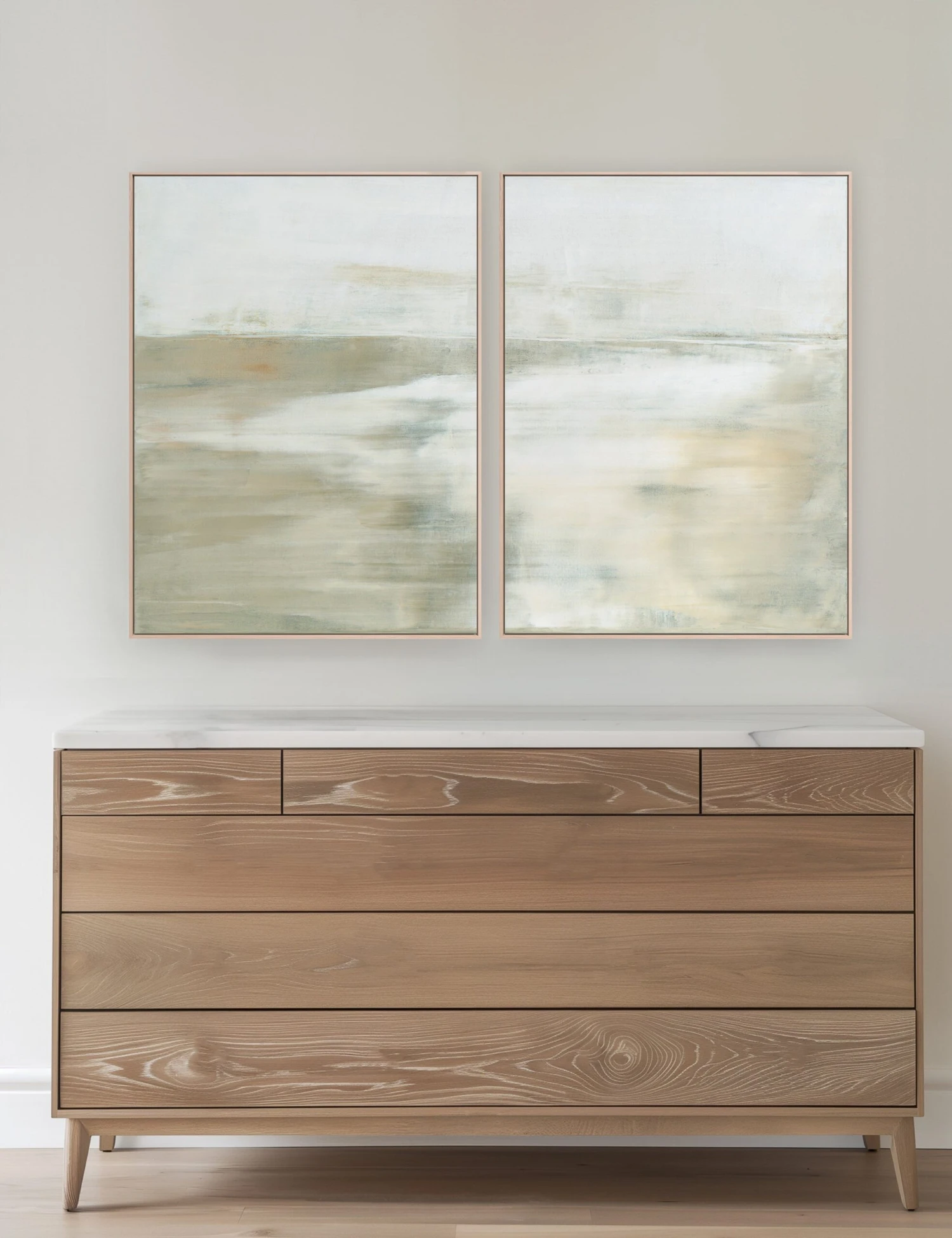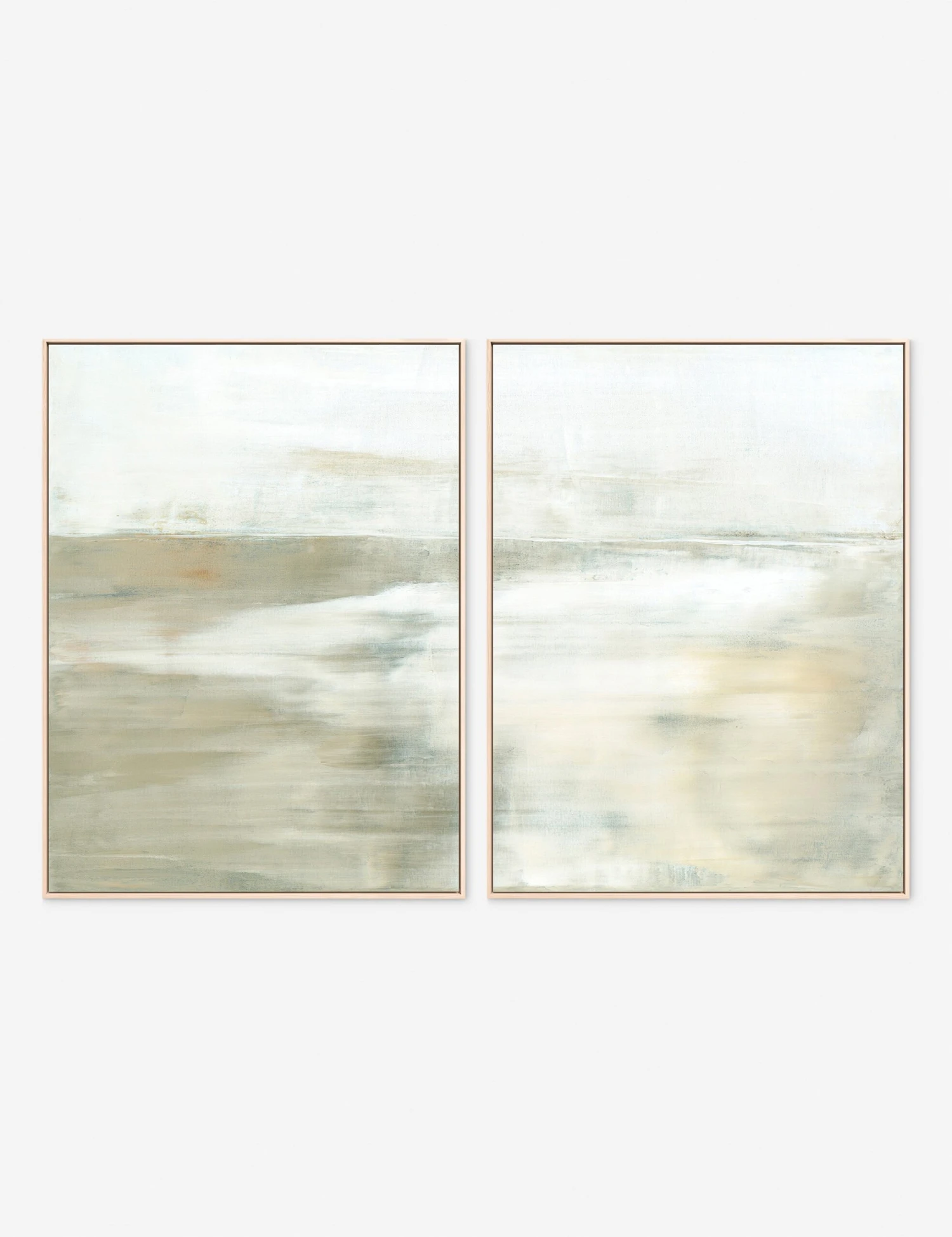 There is a quiet depth in the abstract composition and layered tones of this diptych by Caroll Benson-Cobb. The ethereal quality of the artwork makes it the perfect addition to a space that promotes stillness and reflection with curated wall decor.