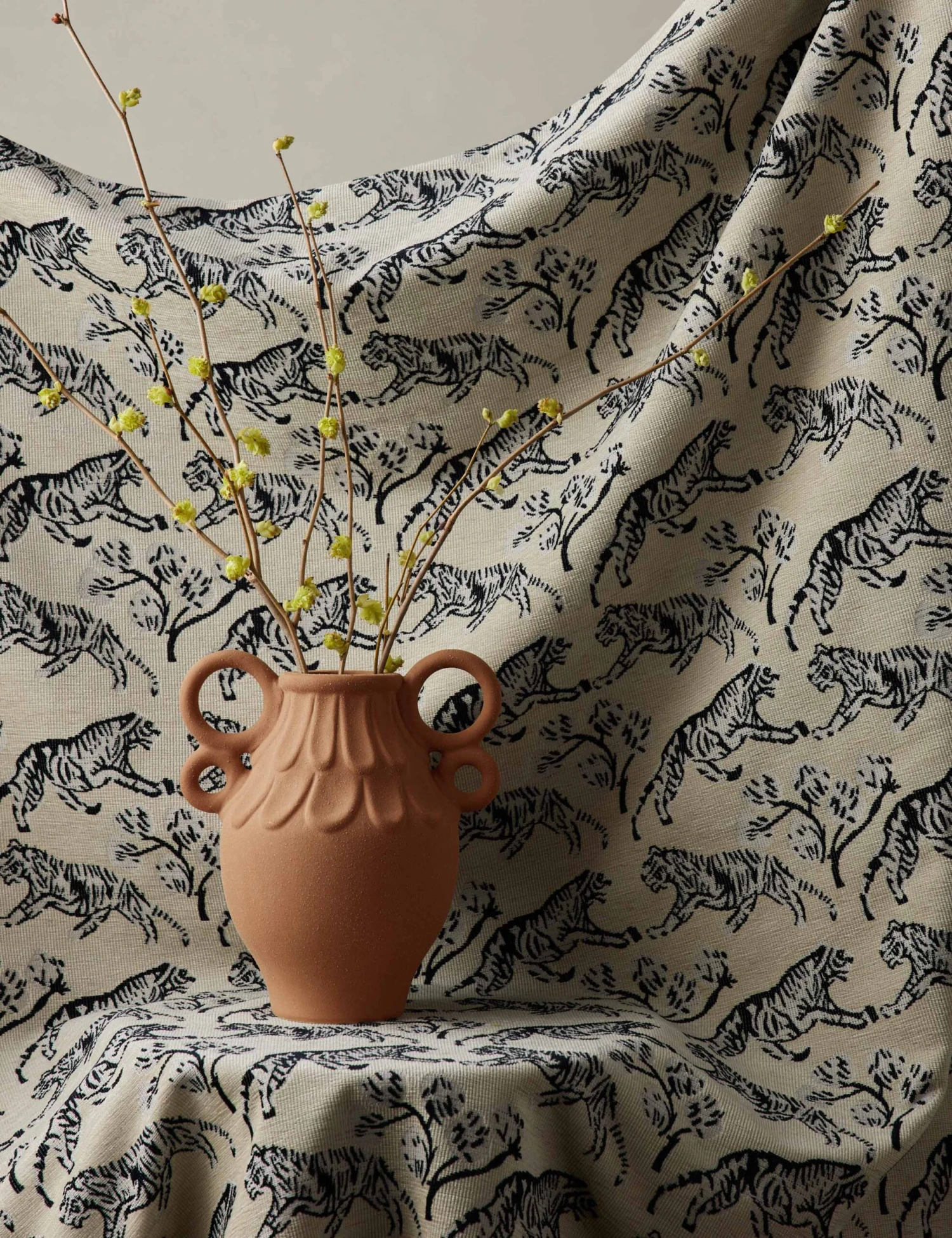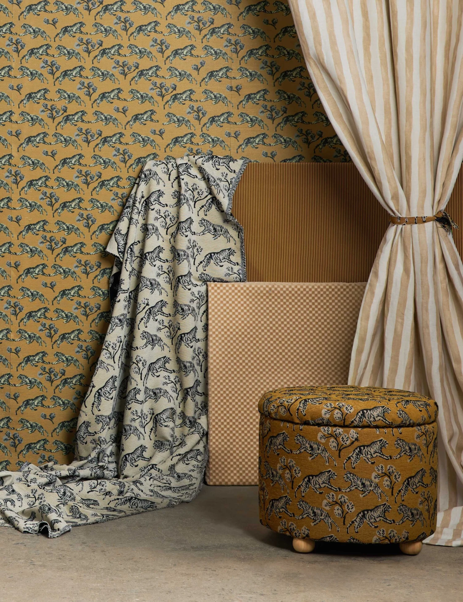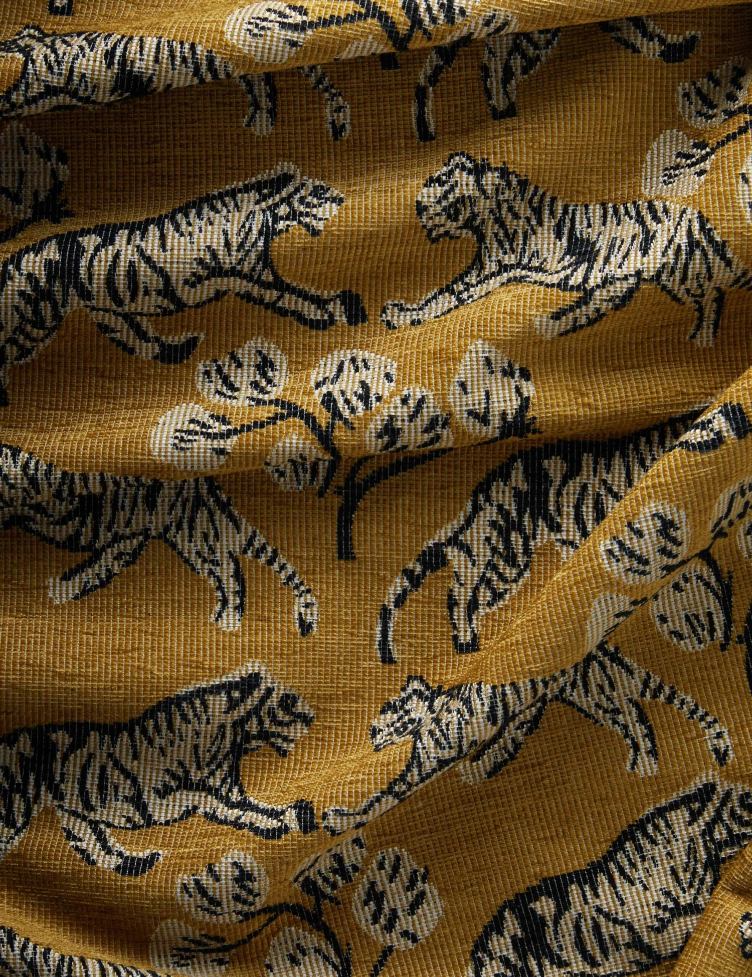 Create a custom element for your home or bring new life to a vintage piece of furniture with this fabric, available by the yard. A playful tiger motif brings graphic intrigue to this textile design for a sophisticated feel in any room. This fabric is from our exclusive Sarah Sherman Samuel collaboration and features all the trademarks of her warm, edited style.