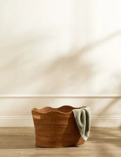 Bring a fresh look to washday with the scalloped edge and airy weave of this rattan laundry basket. The durable design offers breathable function for linens or clothing, adding natural texture to a bedroom, bath, or laundry room.