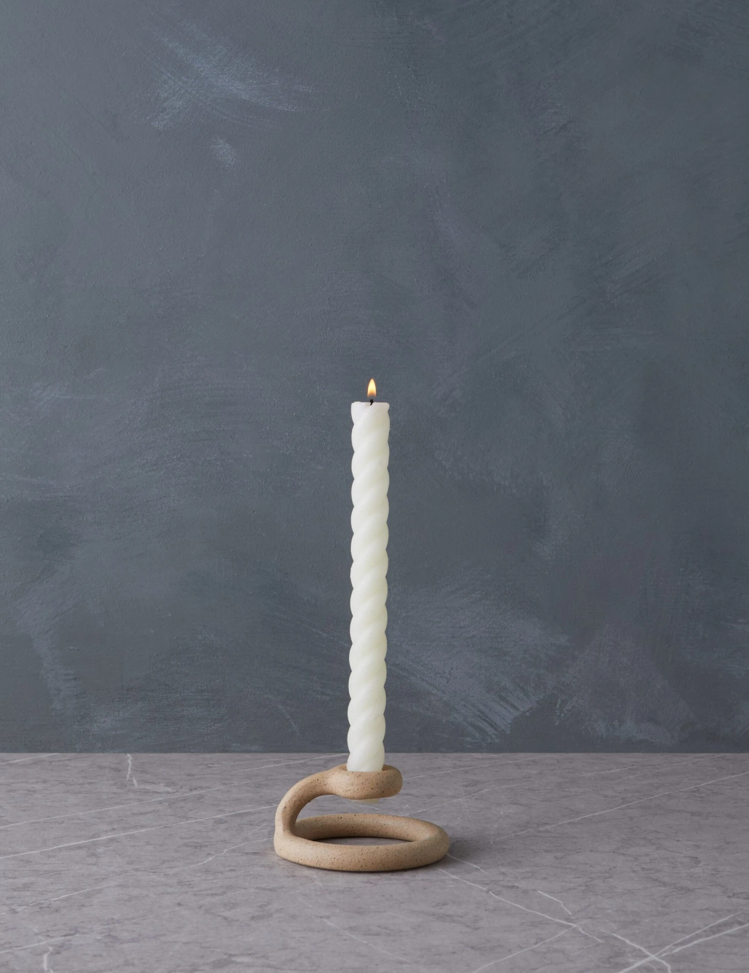 Simple with elements of modern style, this dual candlestick holder keeps a low profile with a matte stoneware finish and a floating design. As a decorative candle holder or as your dinner table centerpiece, it brings versatile, organic style into the mix.