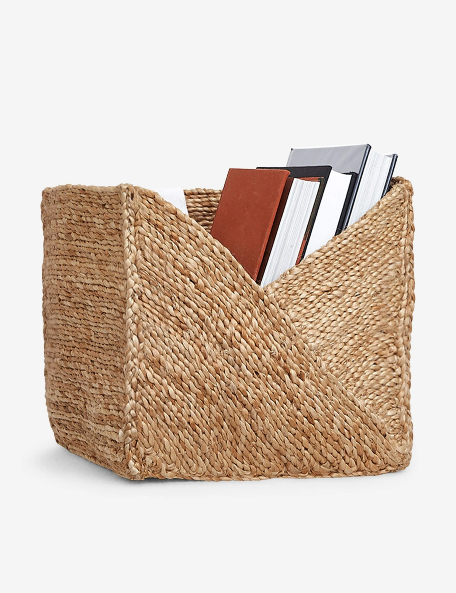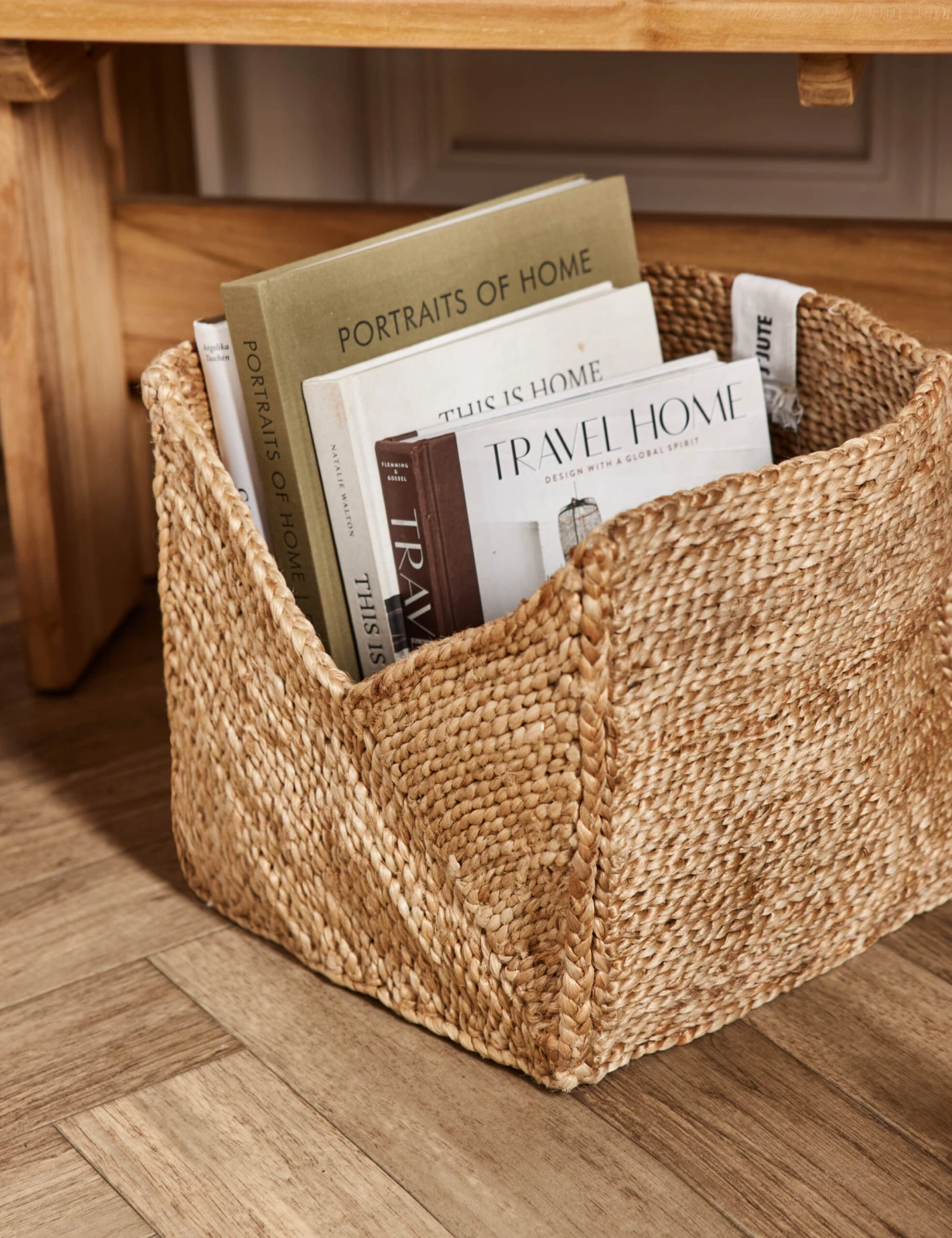 J’Jute offers artisan woven baskets and containers made from jute for everyday storage with an earthy touch. This strong natural fiber provides a durable construction that relaxes over time, folding into the texture of your home with lasting appeal. With a stylish angular design, this square basket is the perfect place for books or more on any shelf or counter.