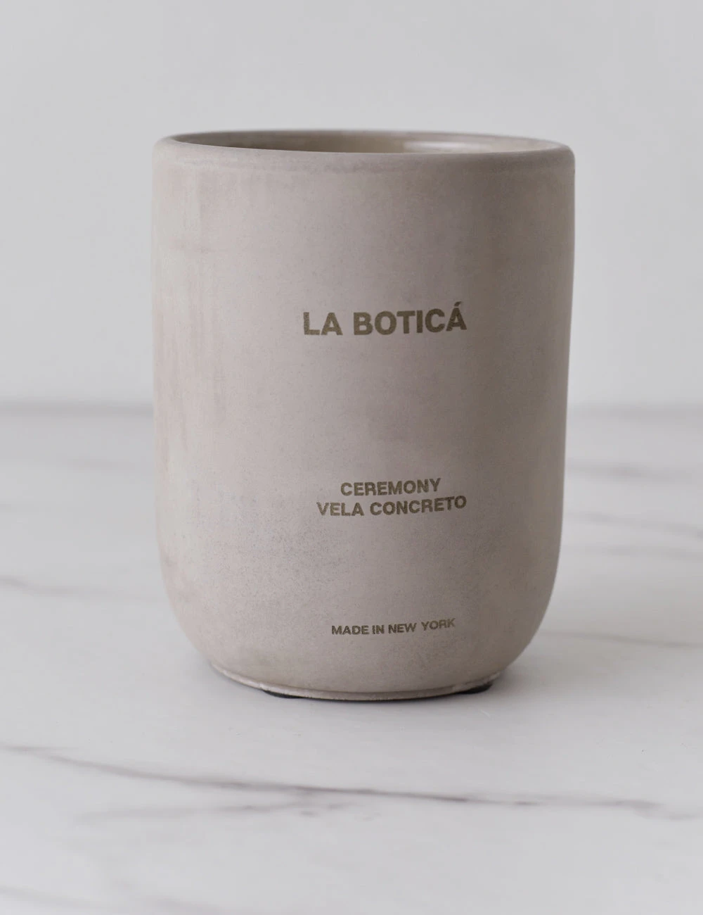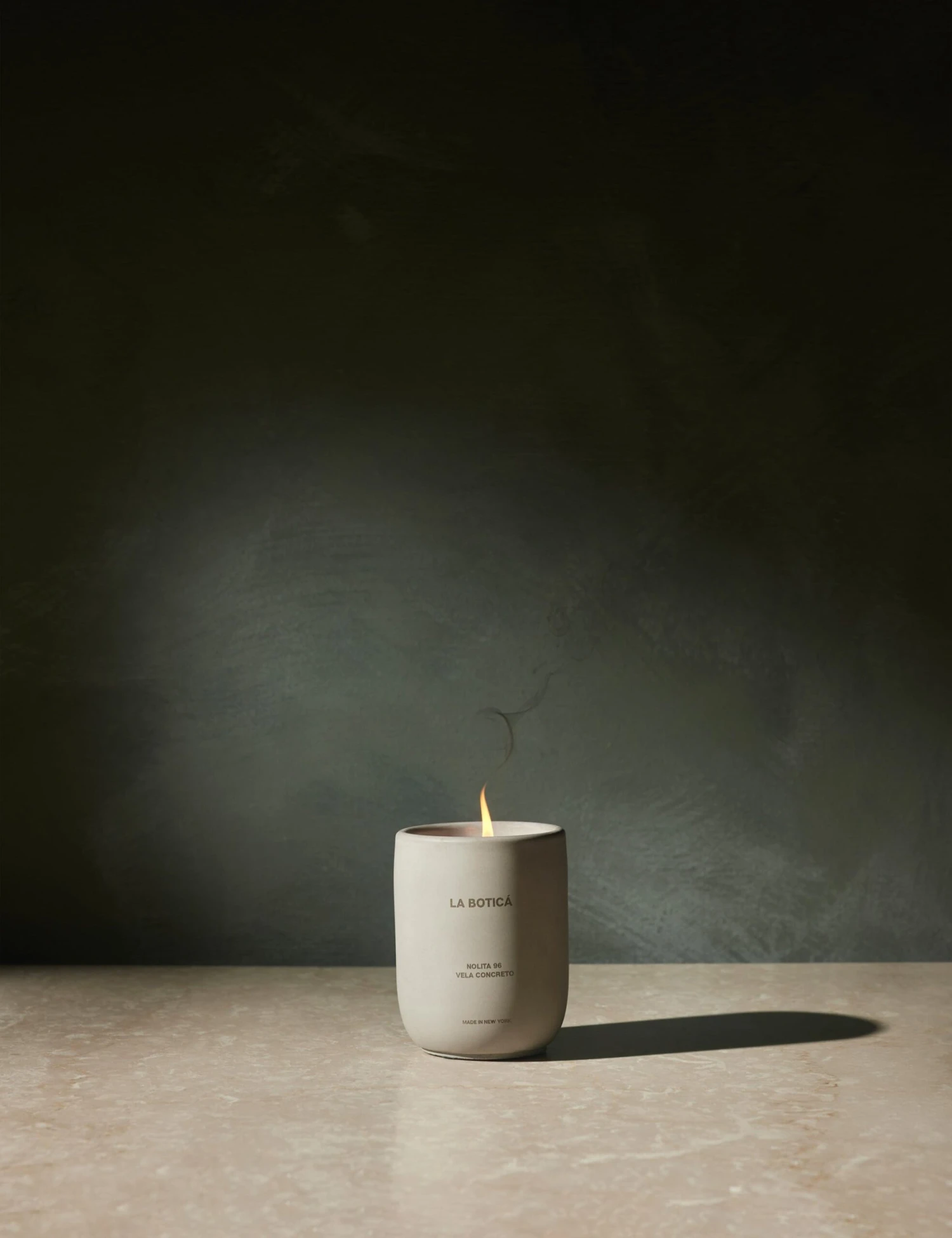 This limited-edition Vela Concreto candle features warm, natural notes to create an evocative and captivating scent that grounds your space. Handcrafted from small-batch castings in the La Boticá studio, this vessel balances earthly materials with an architectural form.