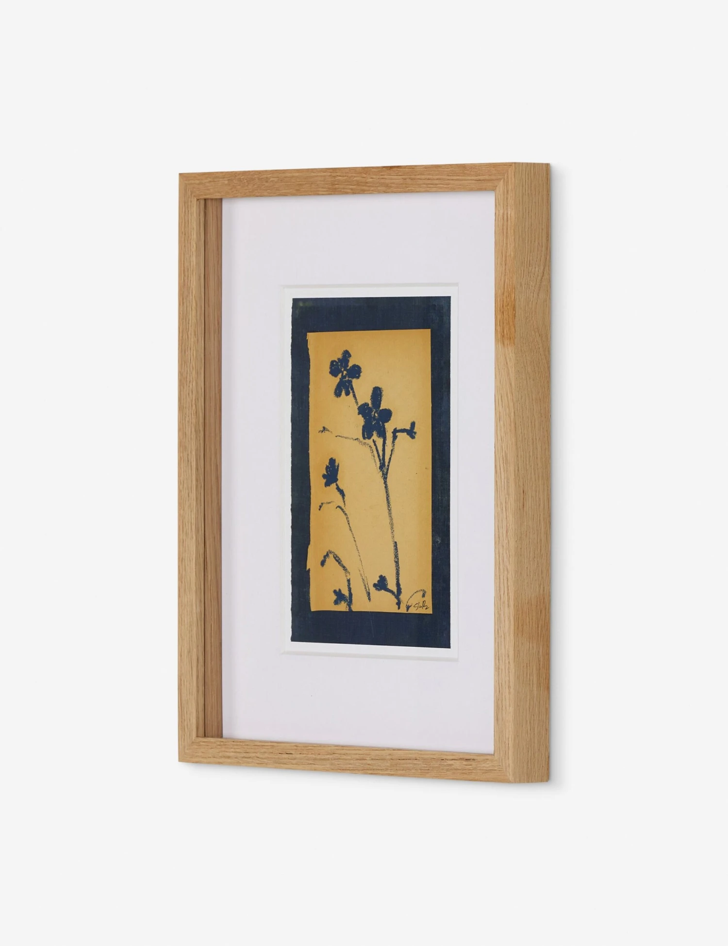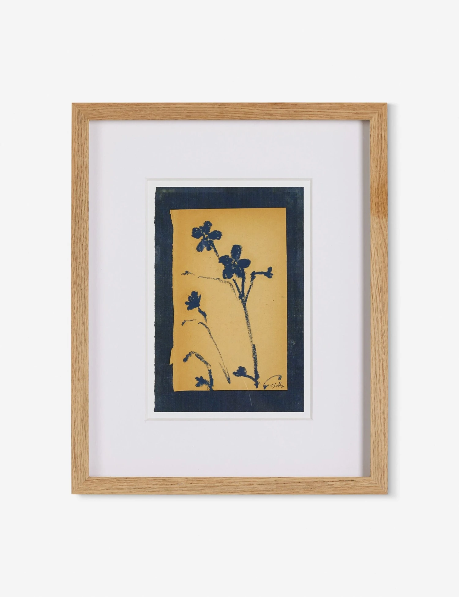 There is a quiet beauty in this floral silhouette. Its delicate forms are captured in contrast against a warm ochre ground, offering a refining touch whether as a standalone piece or part of a gallery-style art wall. The artwork is float-mounted and matted for a striking presentation.