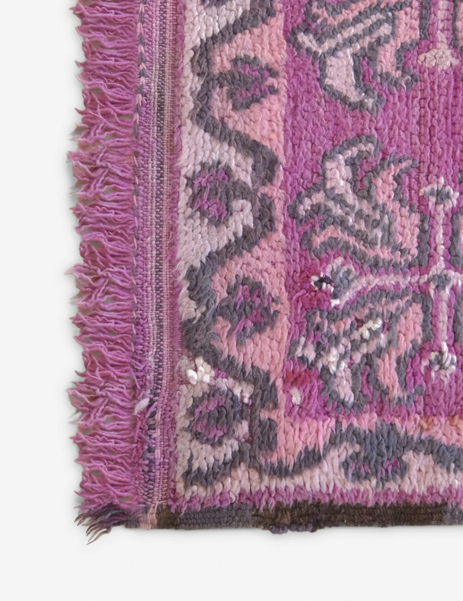 A vintage wool rug instantly transforms your space—adding warmth and rich color, all while feeling like a discovery from far-flung travels. Made entirely by hand in Morocco, this hand-knotted floor rug is truly an investment for your home, a stunning one-of-a-kind centerpiece to build and layer your style onto.