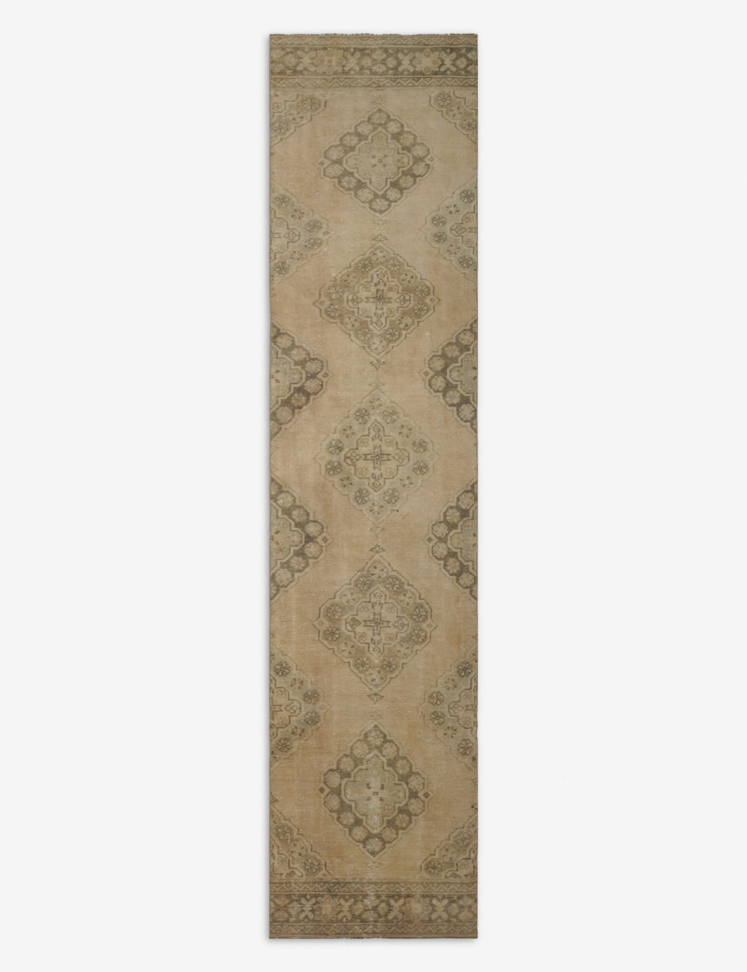 A vintage wool rug instantly transforms your space—adding warmth and rich color, all while feeling like a discovery from far-flung travels. Made entirely by hand in Turkey, this hand-knotted floor rug is truly an investment for your home, a stunning one-of-a-kind centerpiece to build and layer your style onto. The runner size is ideal for hallways or in the kitchen.