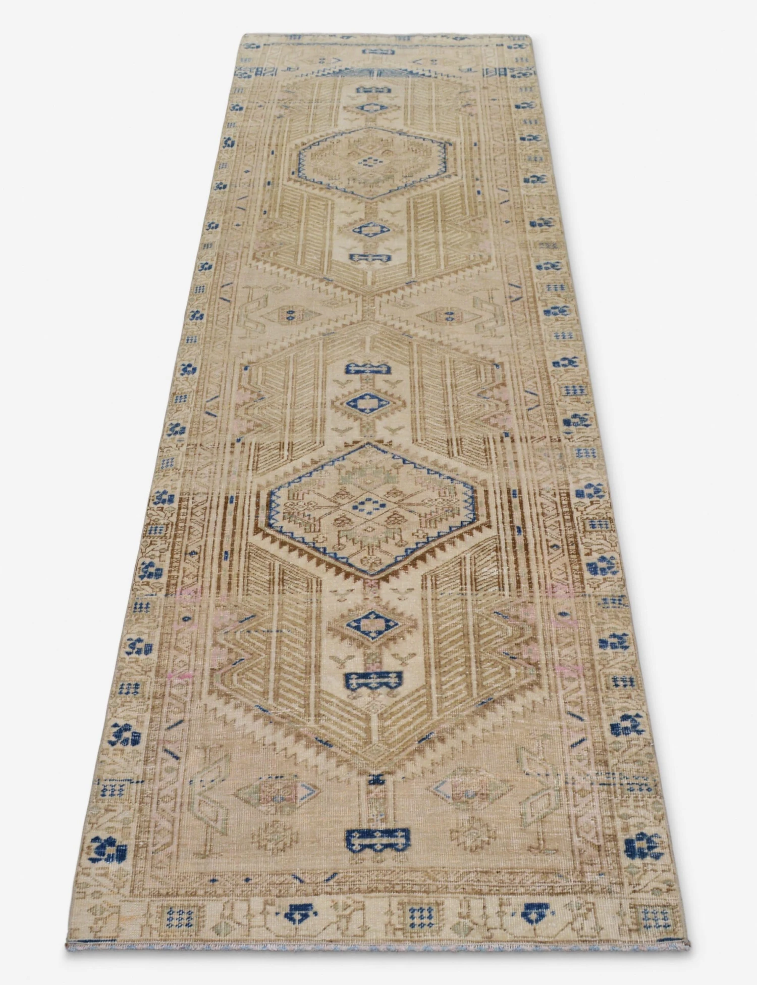 A vintage wool rug instantly transforms your space—adding warmth and rich color, all while feeling like a discovery from far-flung travels. Made entirely by hand in Turkey, this hand-knotted floor rug is truly an investment for your home, a stunning one-of-a-kind centerpiece to build and layer your style onto. The runner size is ideal for hallways or in the kitchen.