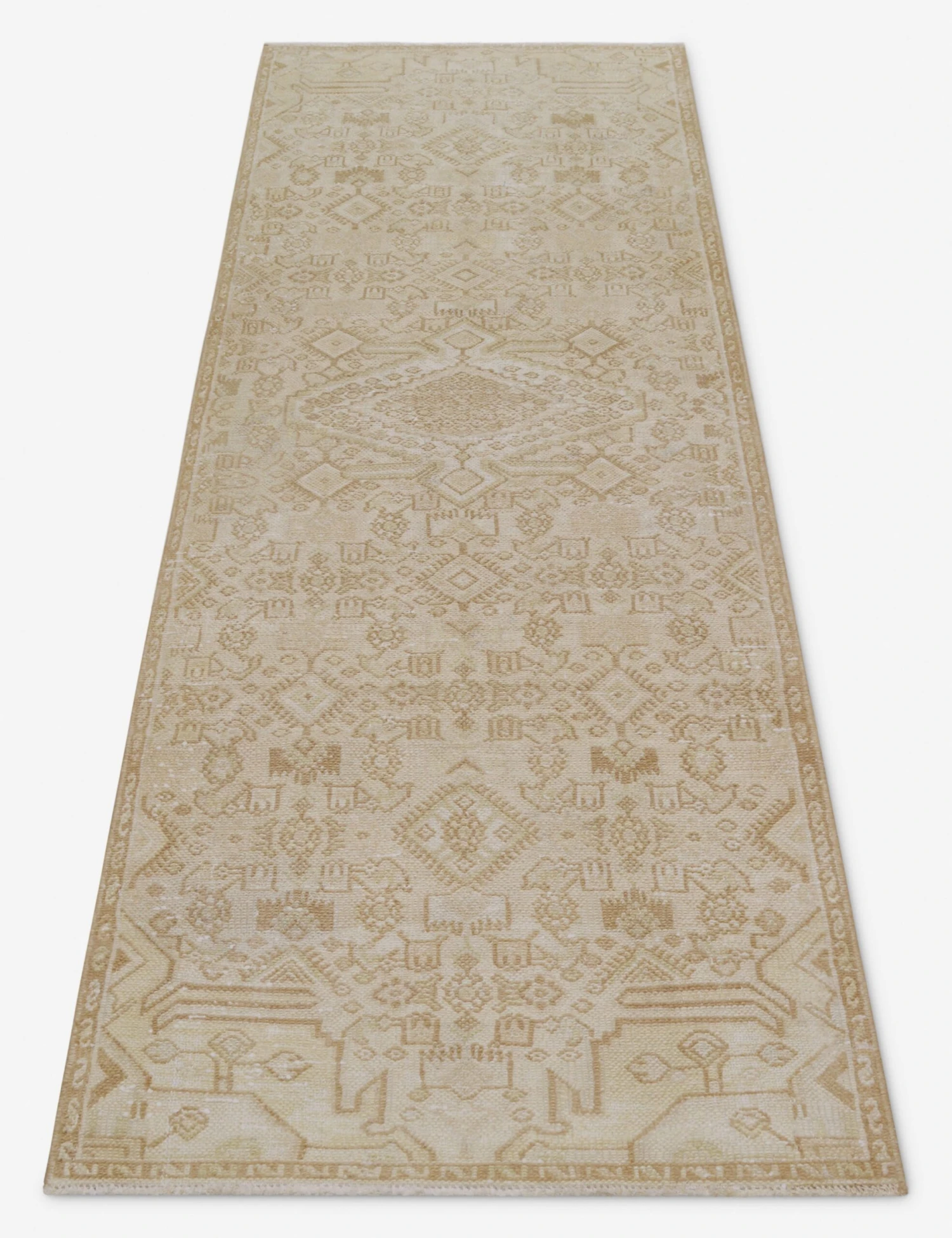 A vintage wool rug instantly transforms your space—adding warmth and rich color, all while feeling like a discovery from far-flung travels. Made entirely by hand in Turkey, this hand-knotted floor rug is truly an investment for your home, a stunning one-of-a-kind centerpiece to build and layer your style onto. The runner size is ideal for hallways or in the kitchen.