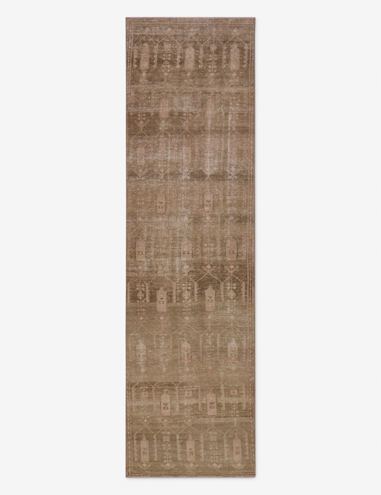 A vintage wool rug instantly transforms your space—adding warmth and rich color, all while feeling like a discovery from far-flung travels. Made entirely by hand in Turkey, this hand-knotted floor rug is truly an investment for your home, a stunning one-of-a-kind centerpiece to build and layer your style onto. The runner size is ideal for hallways or in the kitchen.
