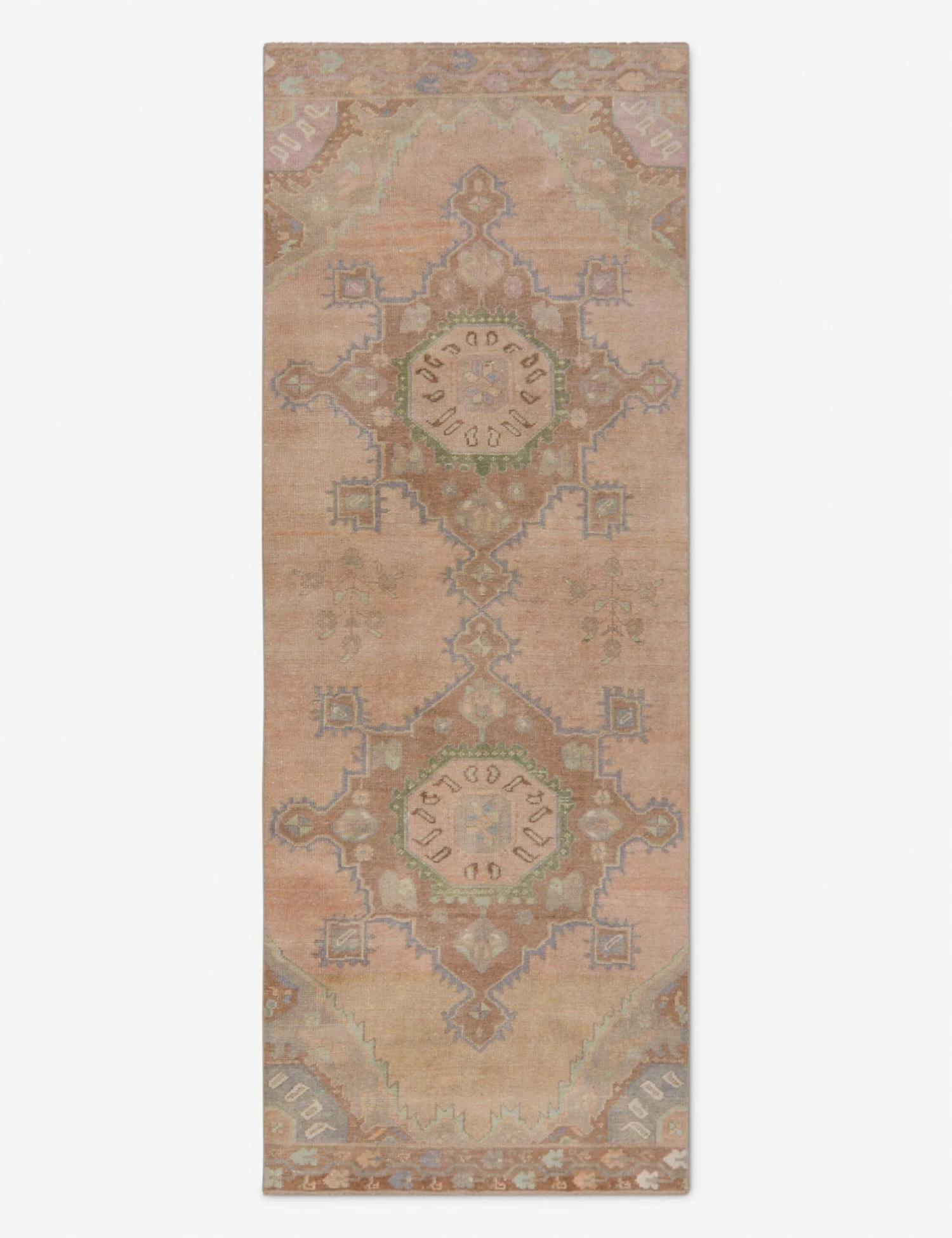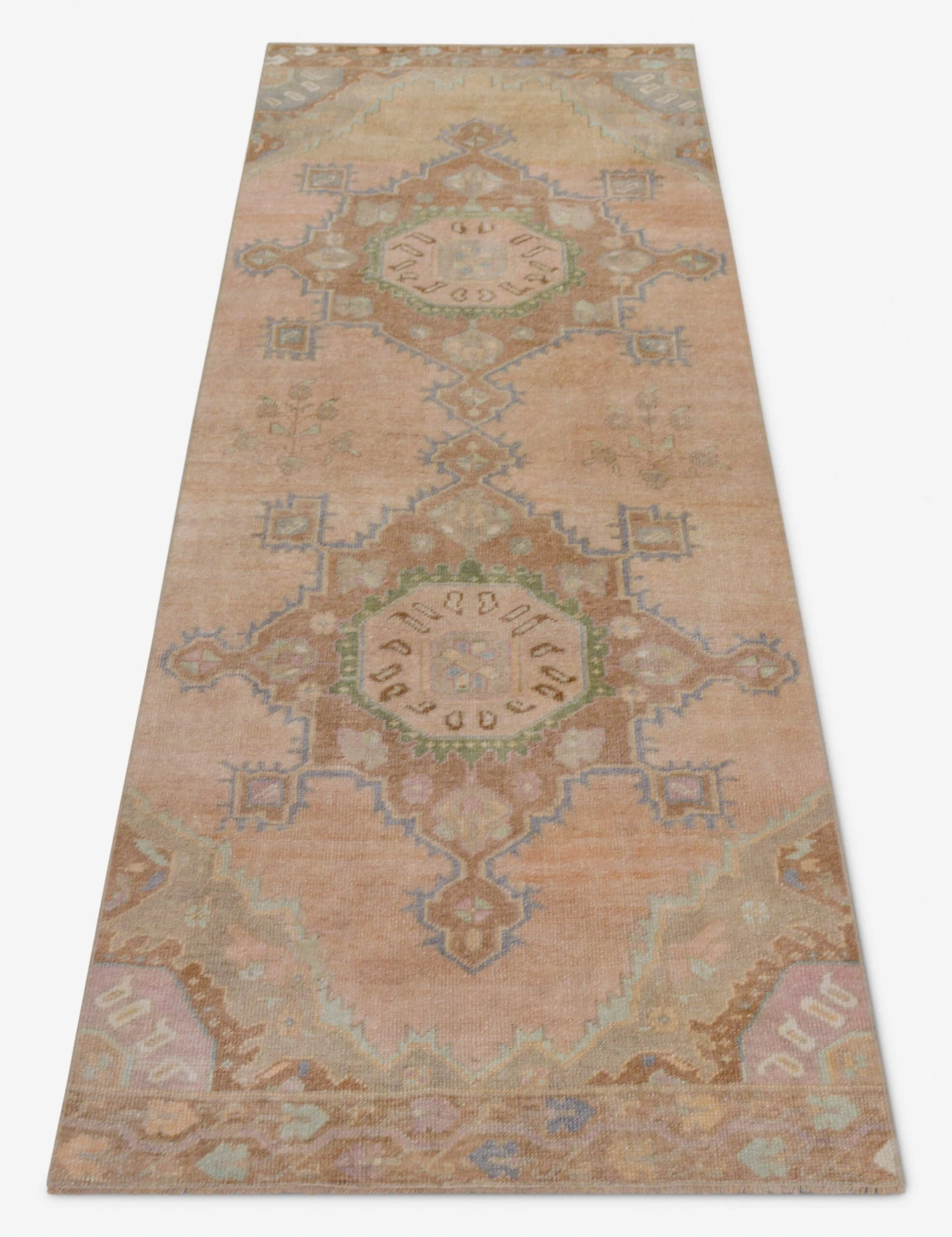 A vintage wool rug instantly transforms your space—adding warmth and rich color, all while feeling like a discovery from far-flung travels. Made entirely by hand in Turkey, this hand-knotted floor rug is truly an investment for your home, a stunning one-of-a-kind centerpiece to build and layer your style onto. The runner size is ideal for hallways or in the kitchen.