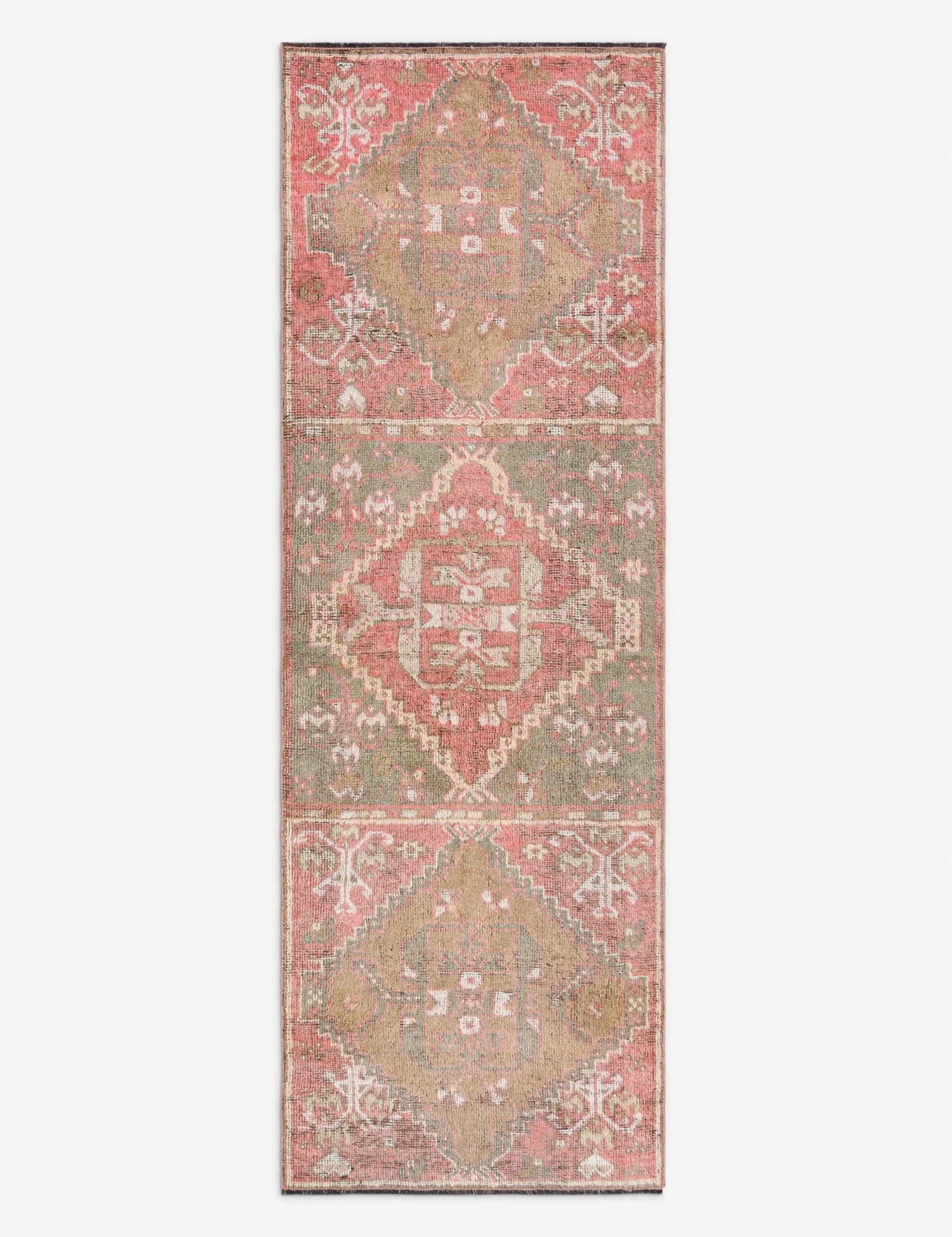 A vintage wool rug instantly transforms your space—adding warmth and rich color, all while feeling like a discovery from far-flung travels. Made entirely by hand in Turkey, this hand-knotted floor rug is truly an investment for your home, a stunning one-of-a-kind centerpiece to build and layer your style onto. The runner size is ideal for hallways or in the kitchen.