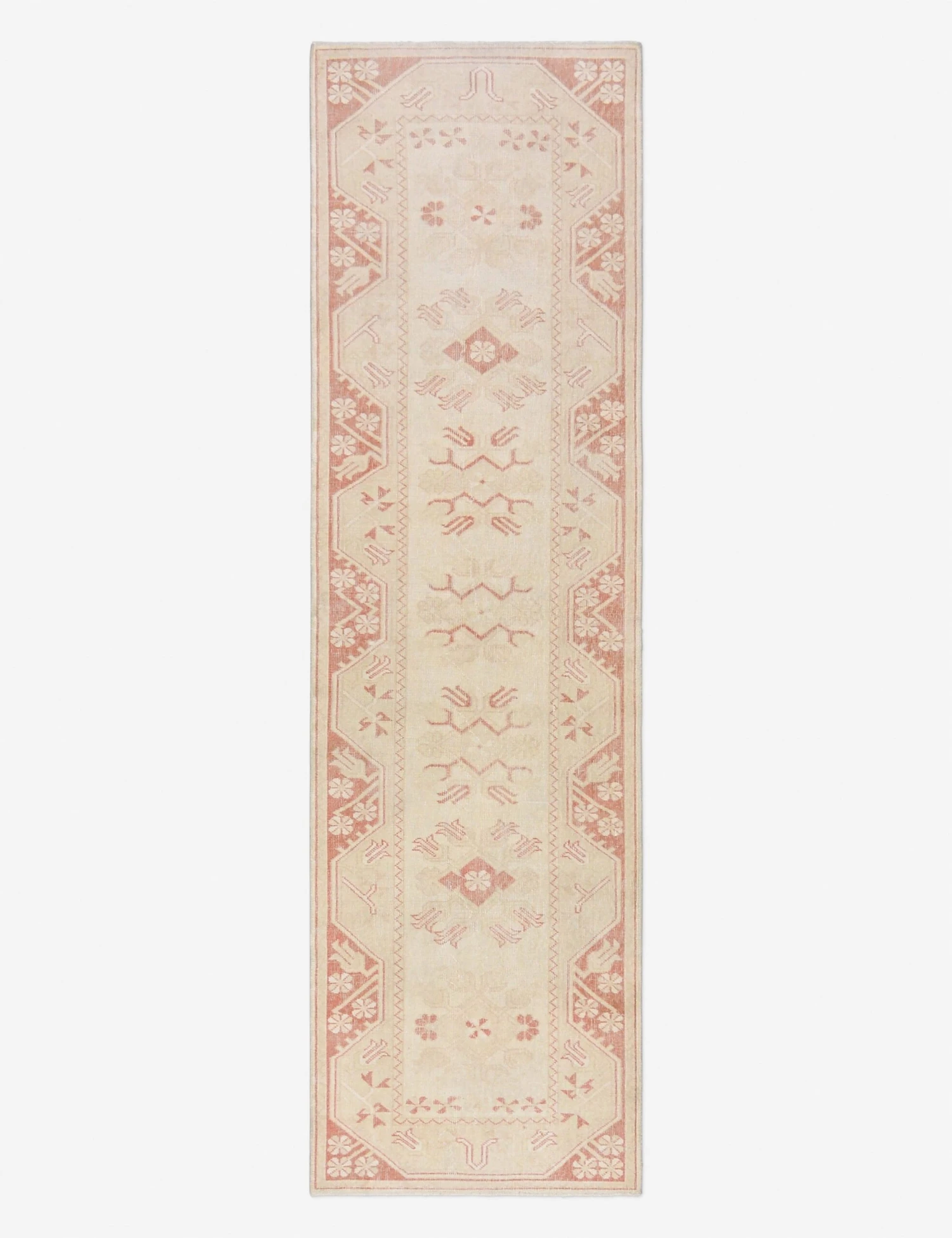 A vintage wool rug instantly transforms your space—adding warmth and rich color, all while feeling like a discovery from far-flung travels. Made entirely by hand in Turkey, this hand-knotted floor rug is truly an investment for your home, a stunning one-of-a-kind centerpiece to build and layer your style onto. The runner size is ideal for hallways or in the kitchen.