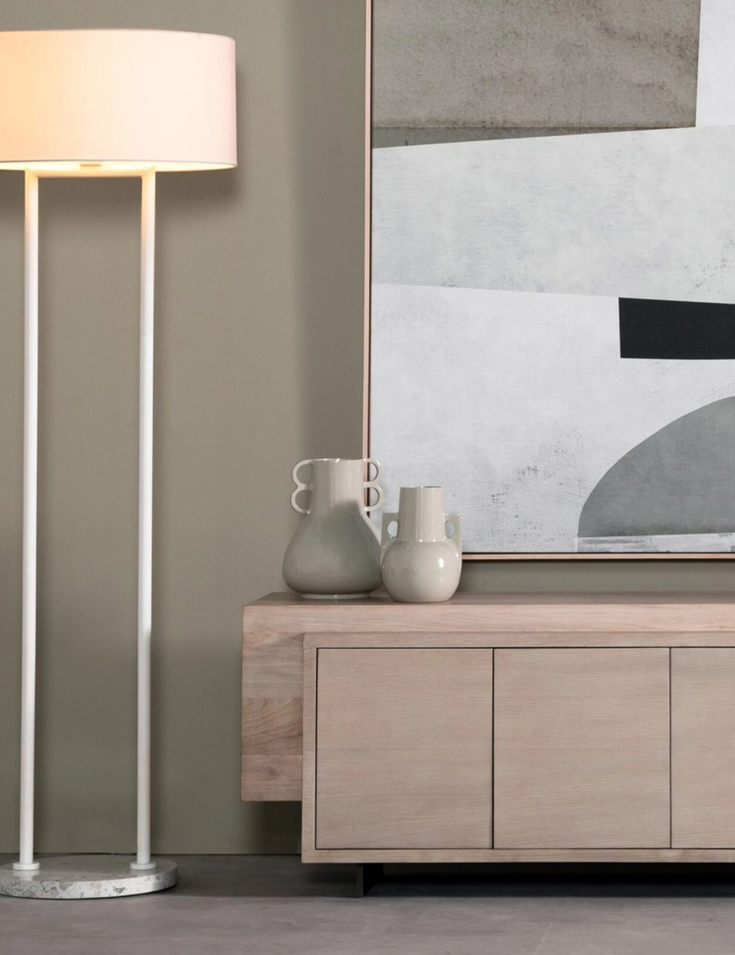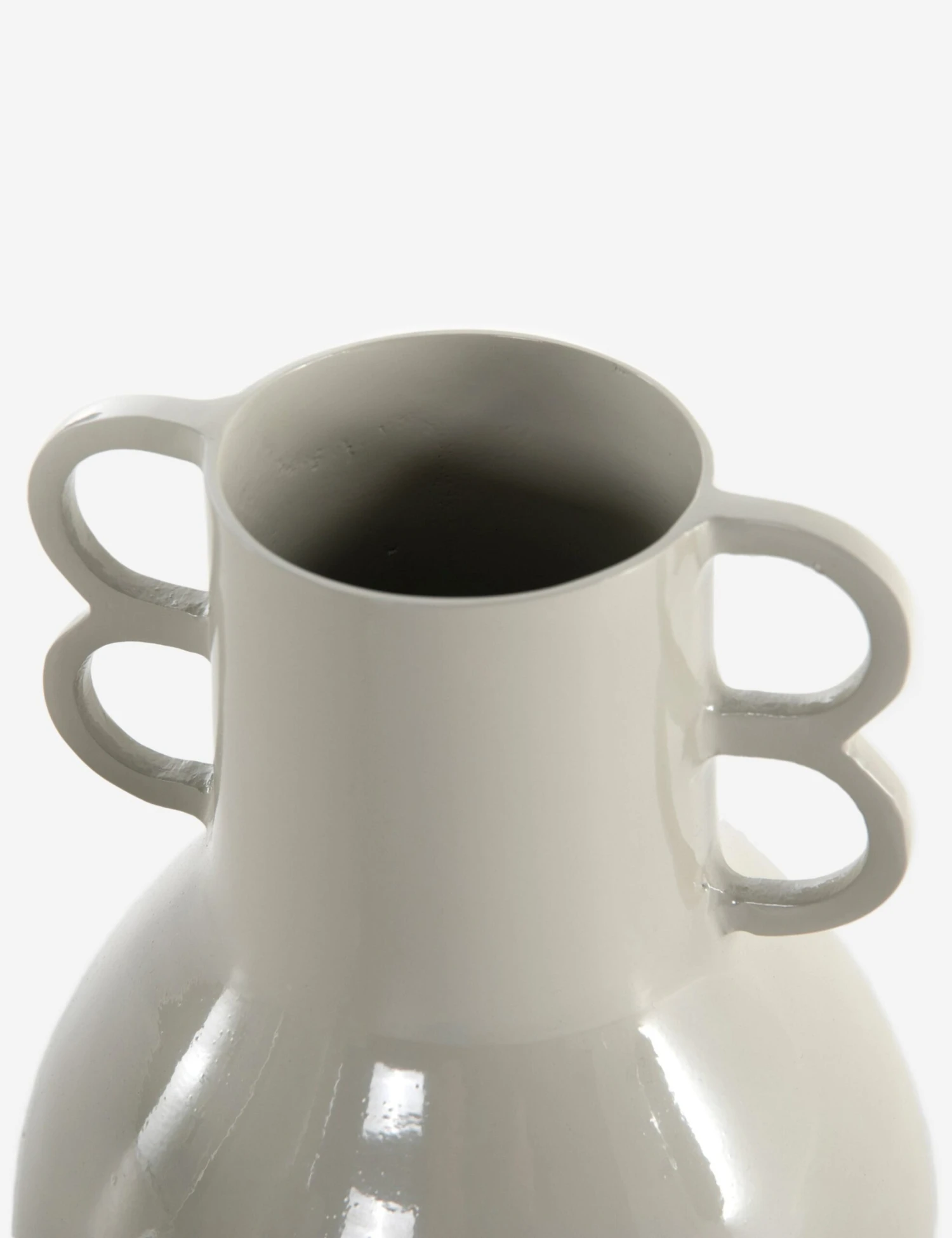 Freshen up a sideboard or tabletop display with the updated silhouettes featured in these modern vases. Each in the set offers a unique design, with a cohesive look created with soft curves, loop handles, and a stylish light gray finish that brings chic energy to kitchens, dining rooms, and beyond.