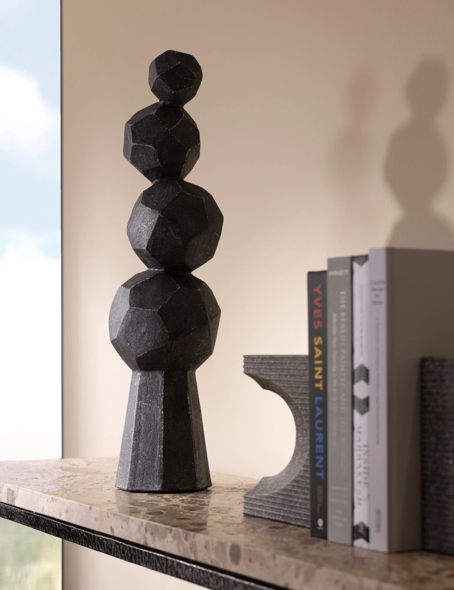 Create sculptural impact with this unique tabletop accent. Inspired by the silhouette of geodesic domes, a stack of faceted shapes is perched atop the carved plinth base. This piece blends elemental appeal with an artful edge set for modern decor.