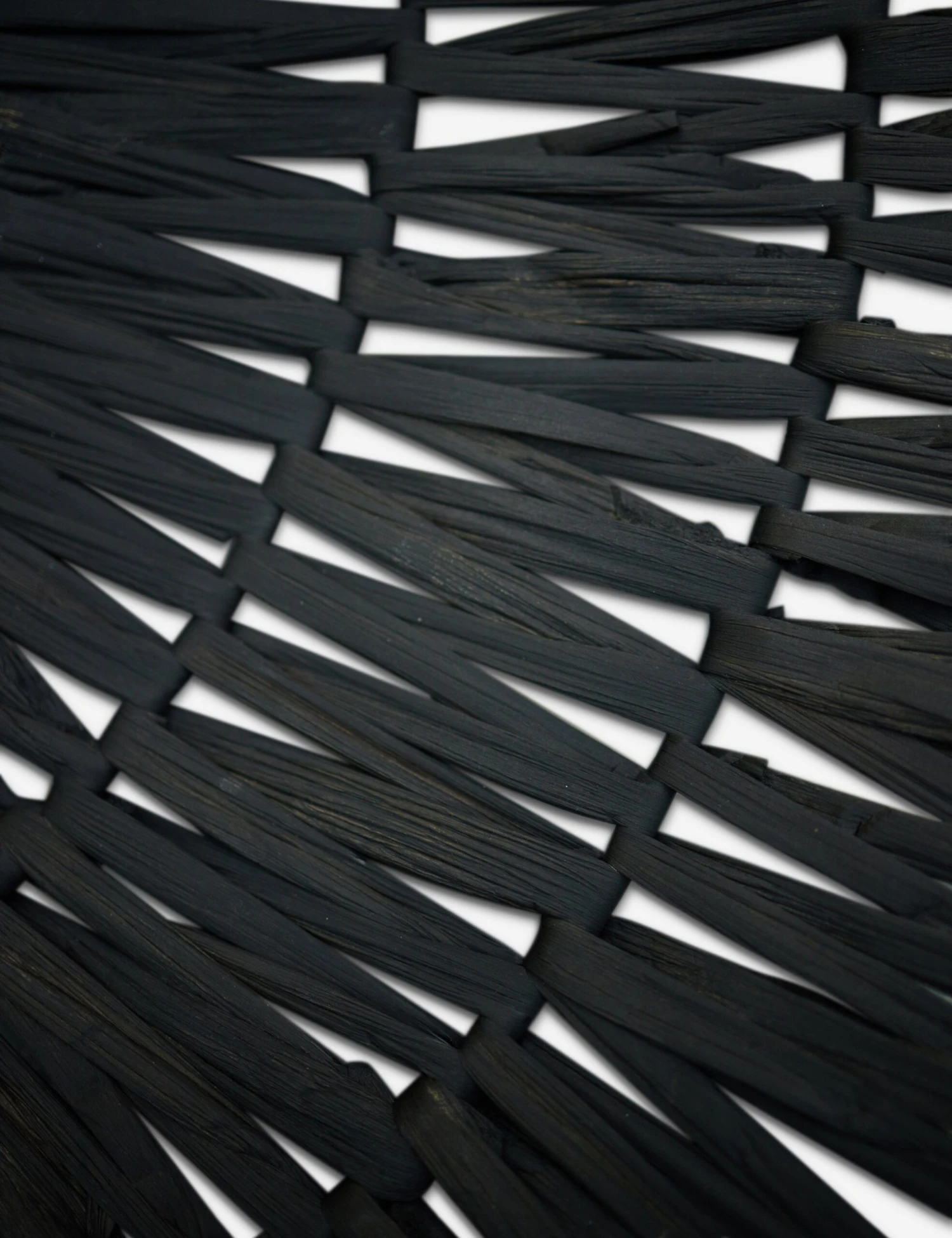 Add organic texture and global style to your space by adding this statement-making wall piece. The hand-painted ceramic center is surrounded by a bold water-hyacinth wrap, woven with geometric design in mind.