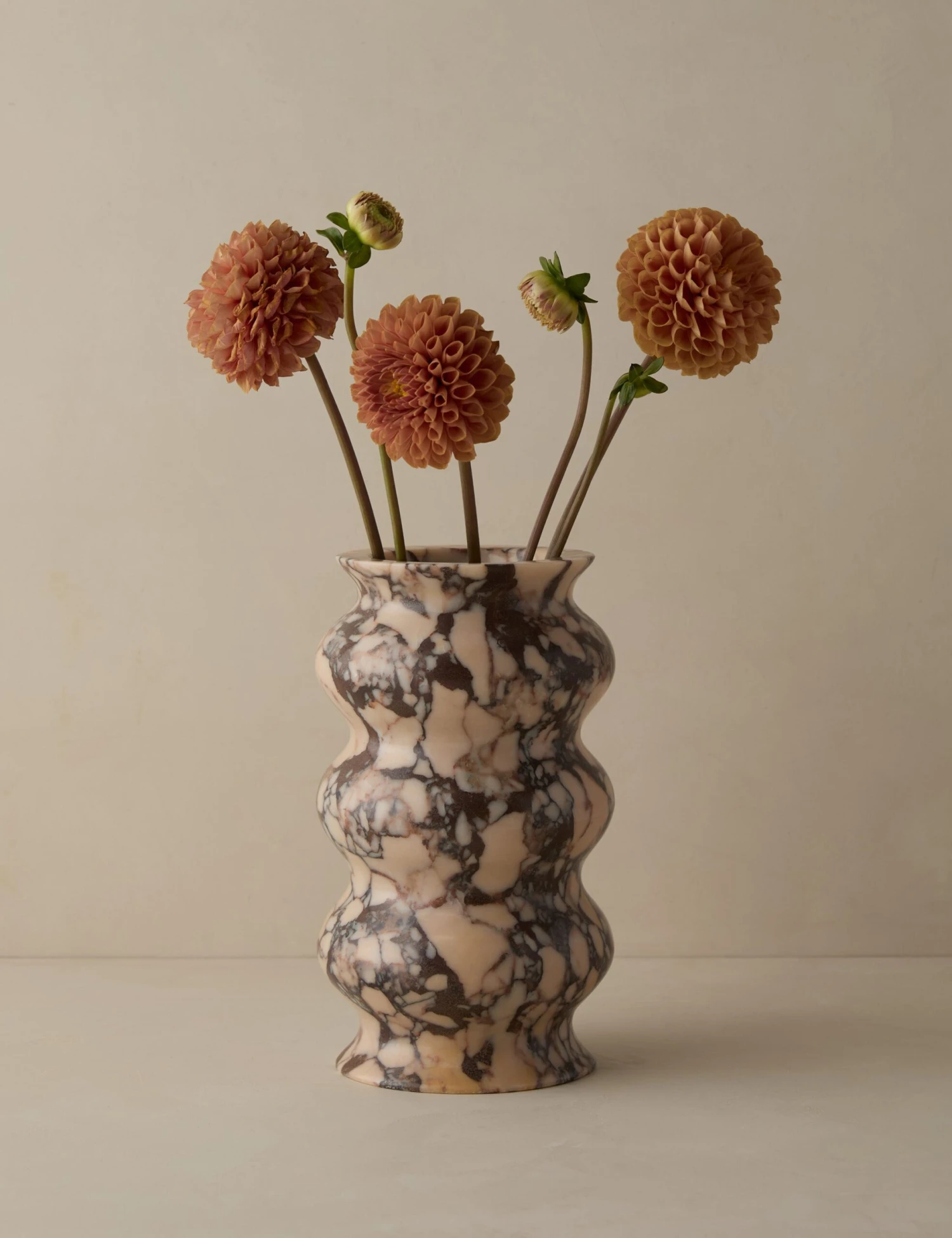Celebrated for their ceramics and bold designs, Lolly Lolly Ceramics brings their knack for sophistication with a playful edge to an exclusive collection for your entire home. The contoured form of this marble vase evokes rhythm and movement, bringing a freshness of style to its timeless quality. The vase is hand-carved from uniquely varied stone, making each a one-of-a-kind piece.
